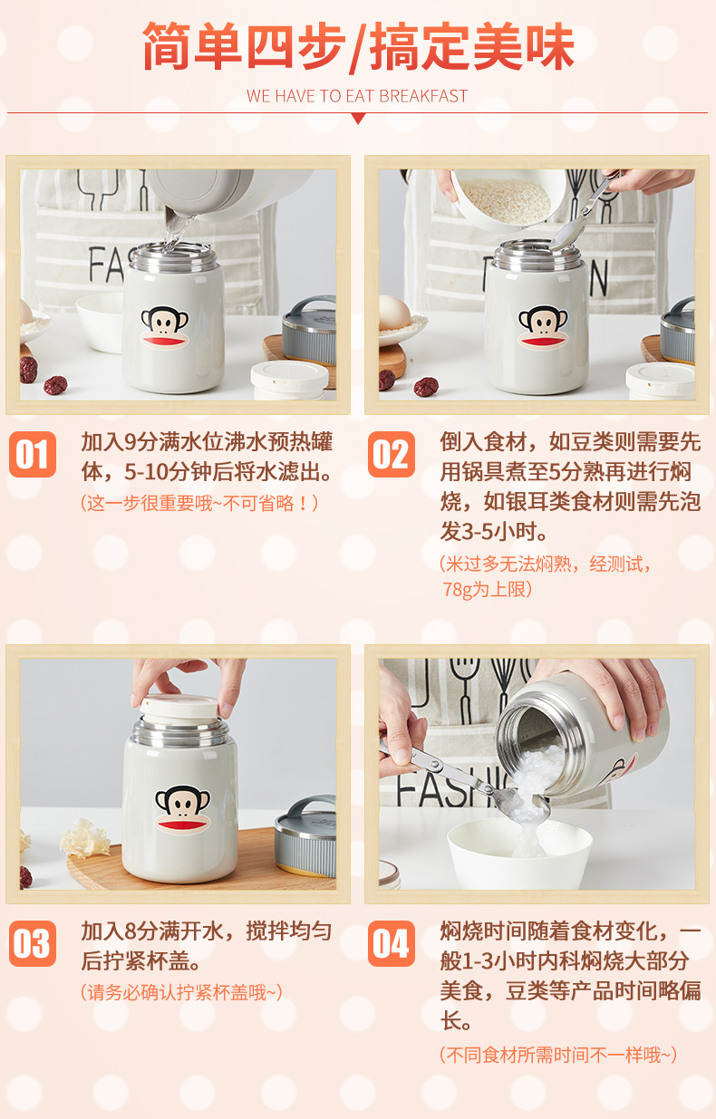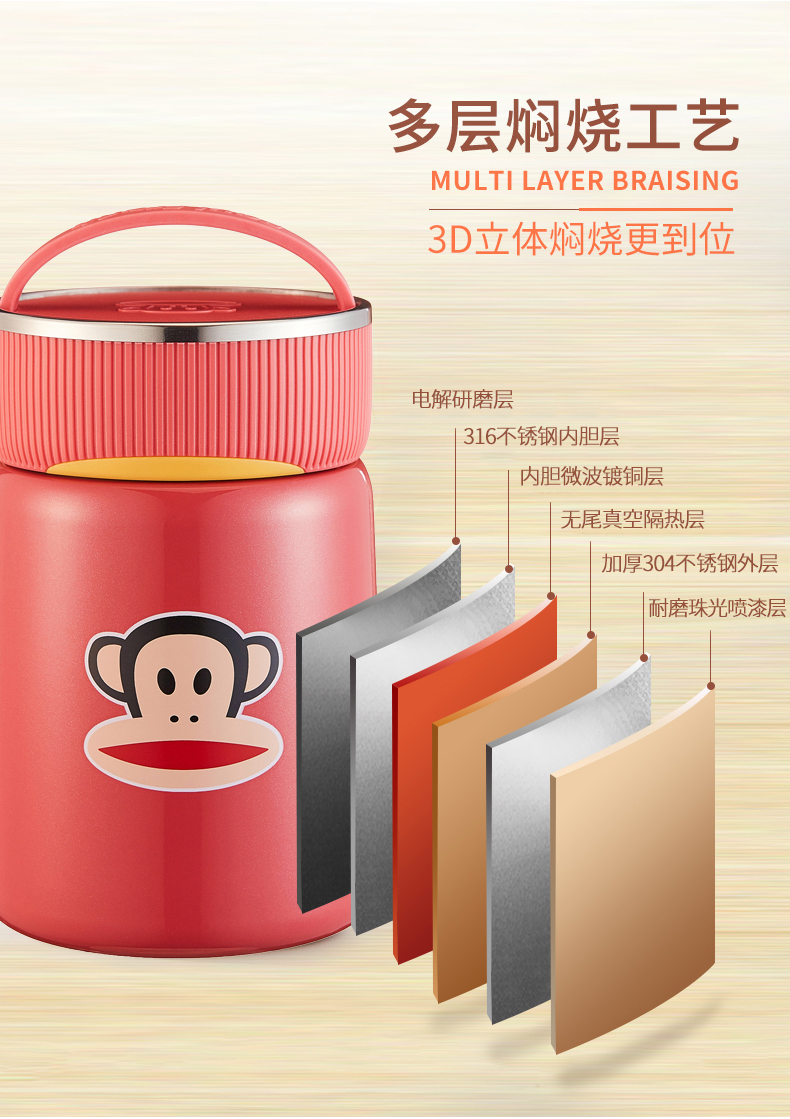 大嘴猴焖烧杯316不锈钢学生便携焖烧壶粥桶超长保温饭盒焖粥罐