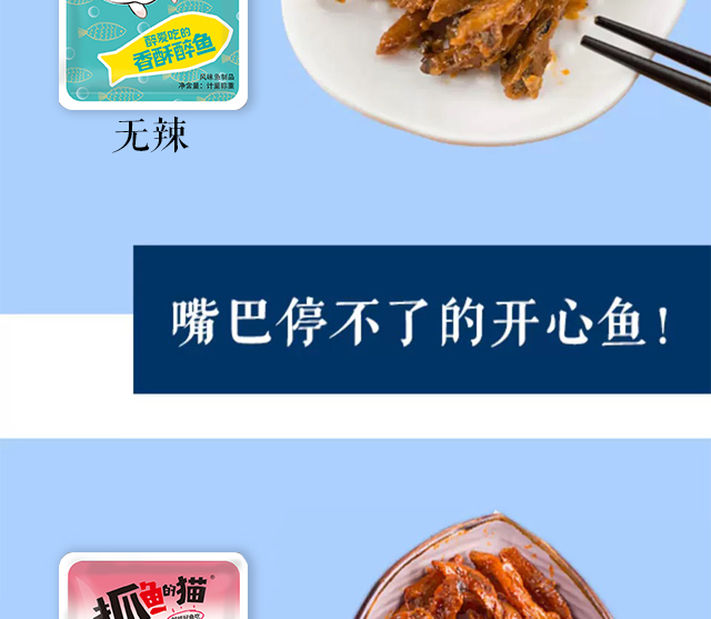 抓鱼的猫酱椒香酥醉小鱼仔80包麻辣小鱼仔湖南特产毛毛鱼小吃零食