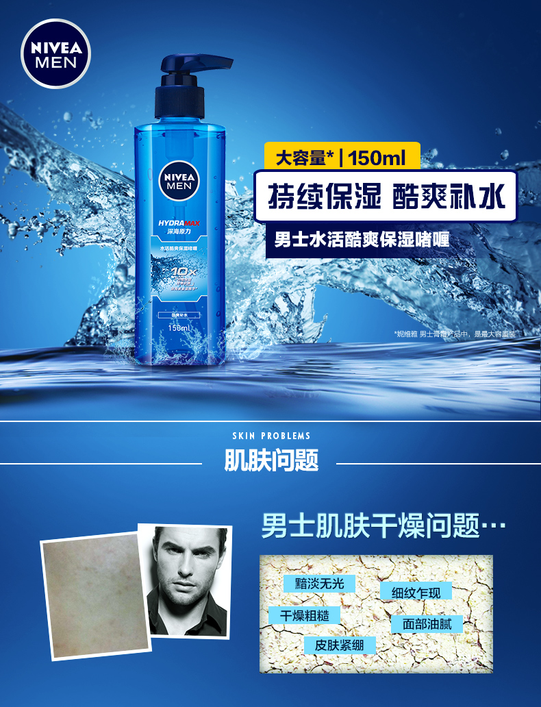 妮维雅男士护肤补水保湿啫喱面霜 润肤乳乳液水乳爽肤水赠洗面奶