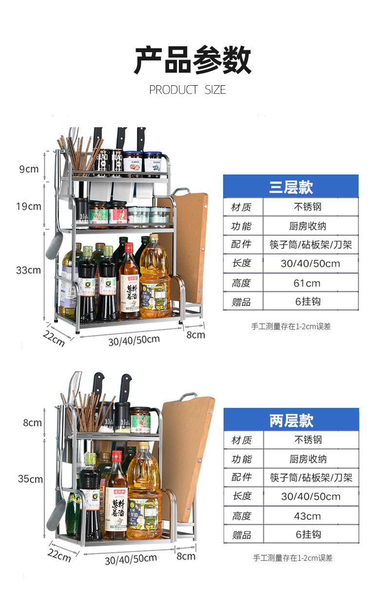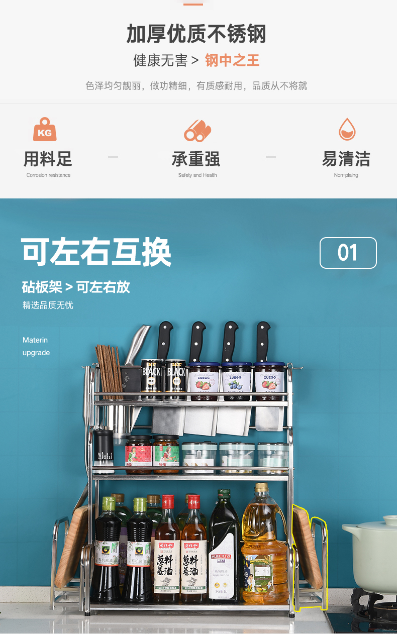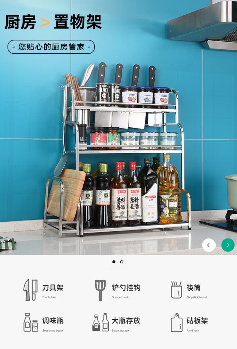 厨房置物架调料味不锈钢用品家用大全落地多层神器刀架厨房收纳架