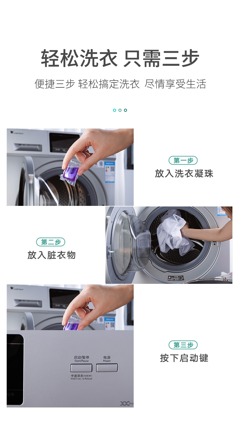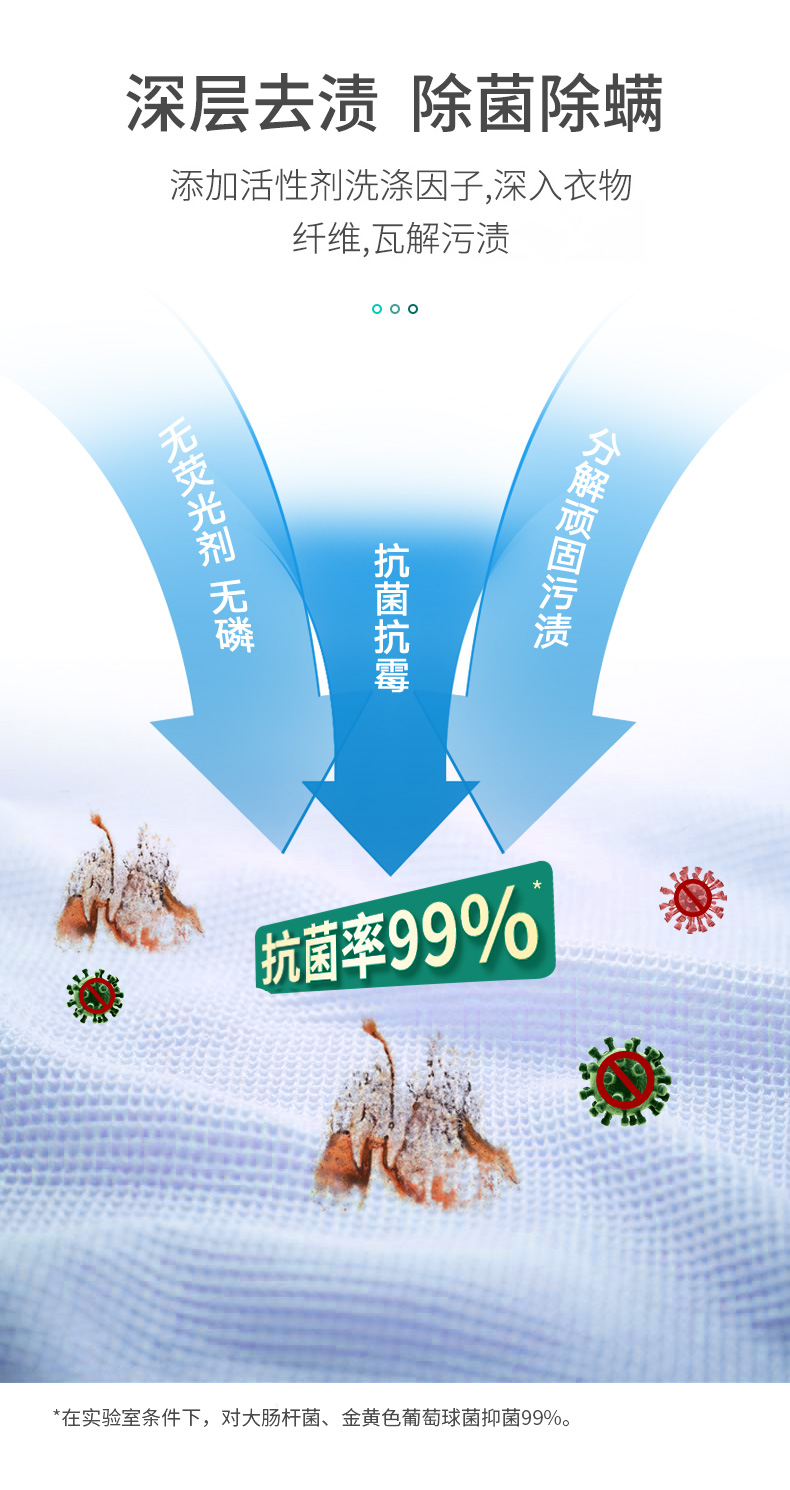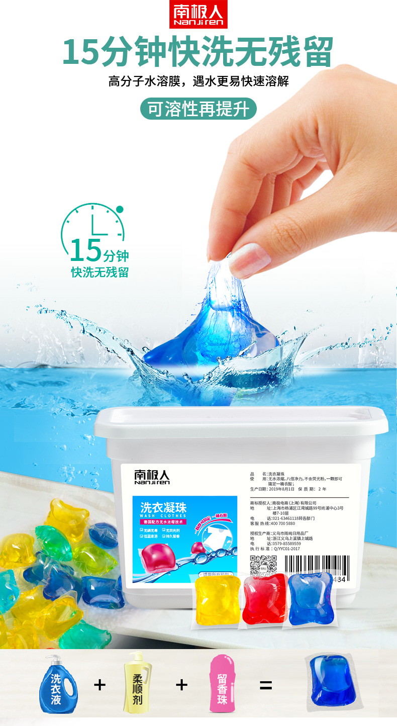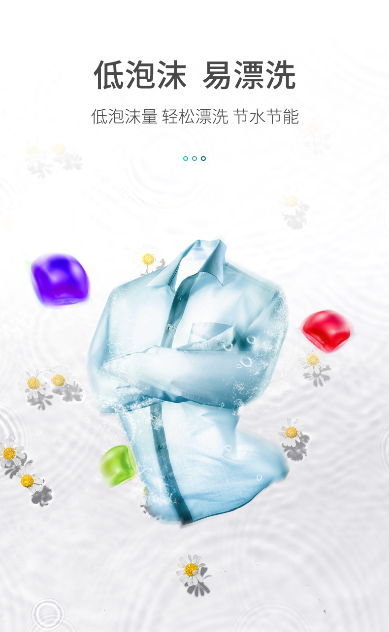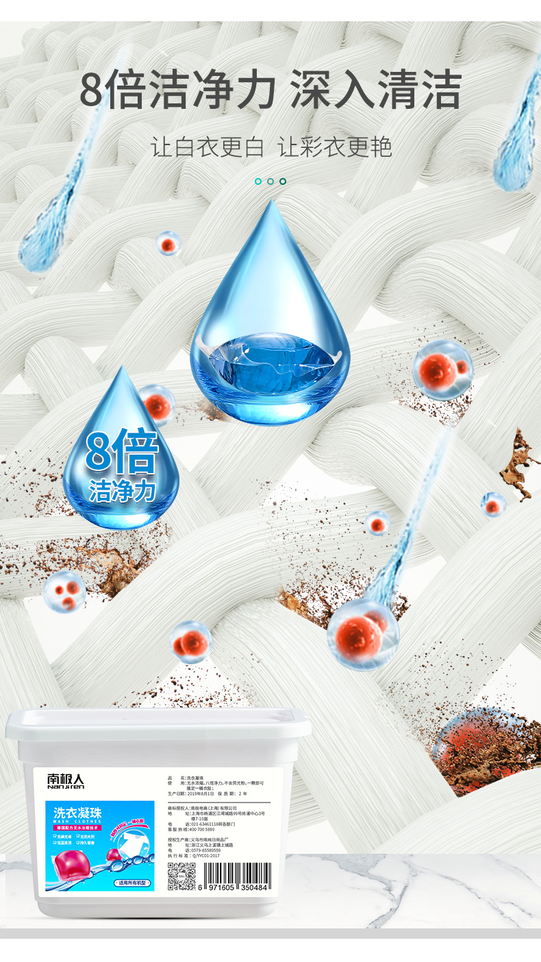 遇水即溶,低泡易漂,八倍洁净力,一颗抵八盖洗衣液,方便又干净,除螨除菌,自然酵素,无荧光剂,污渍去无踪,衣物洁净如新,持久留香!