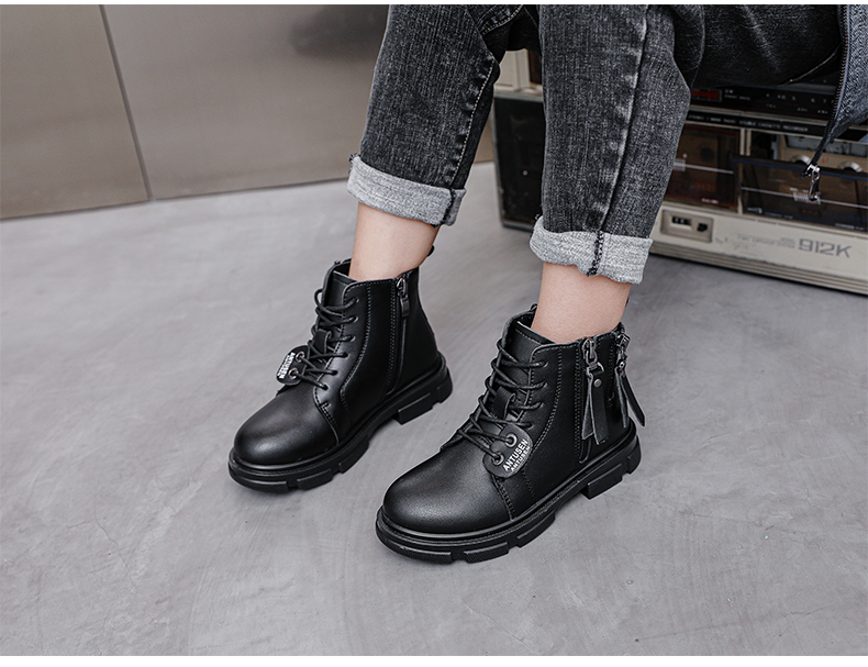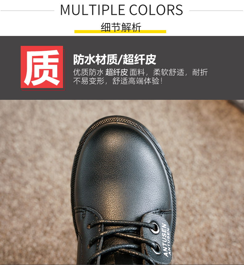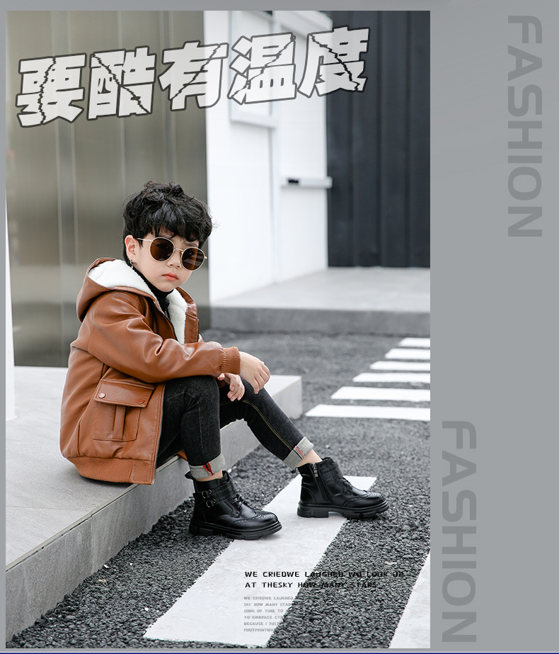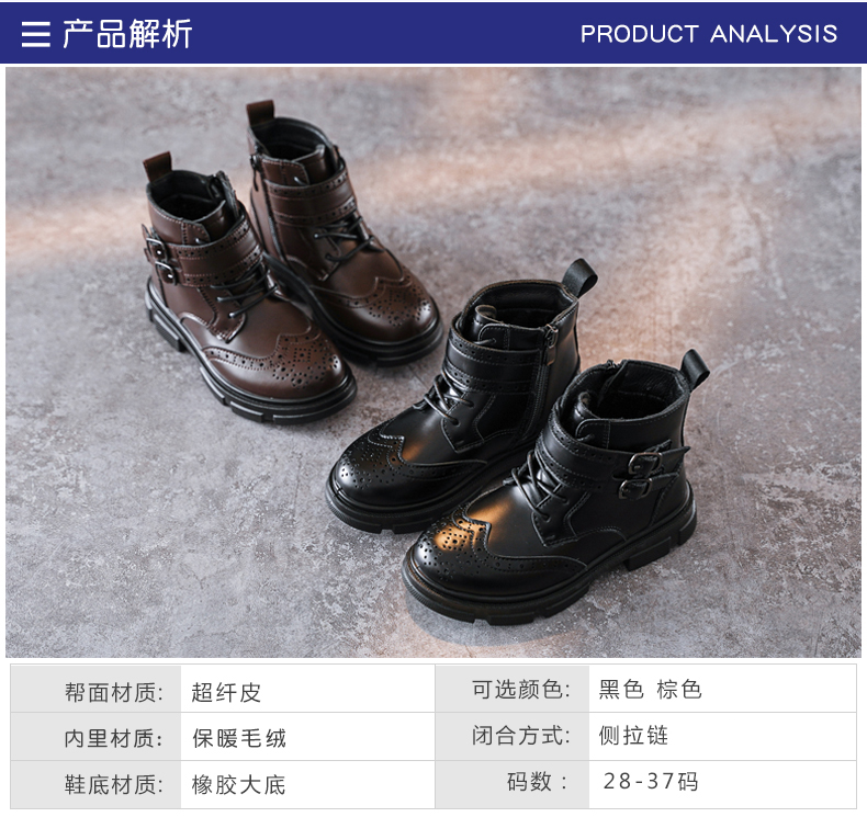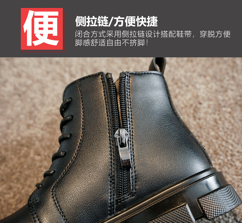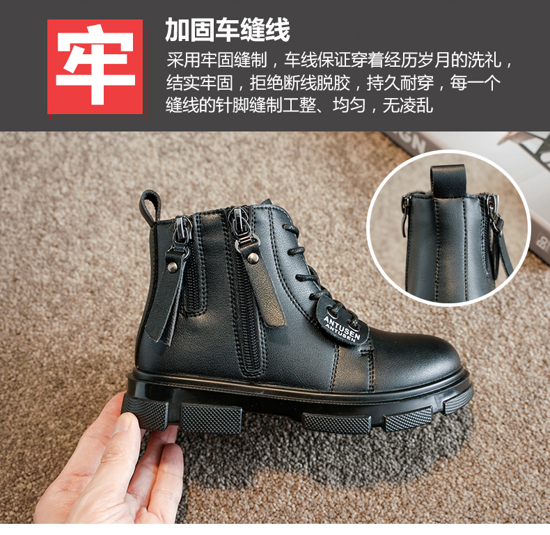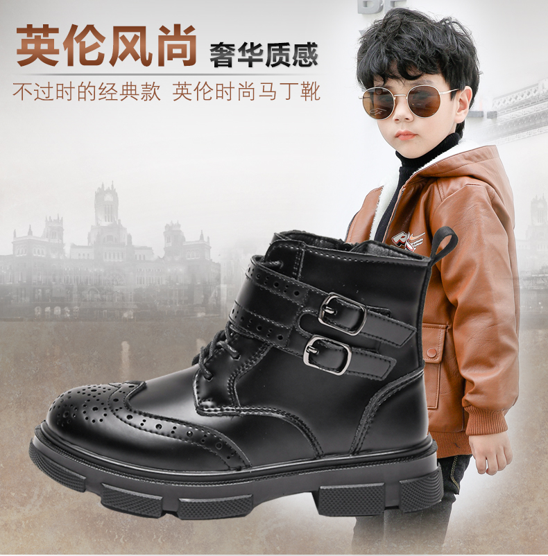 童鞋男童短靴牛皮2019冬新款儿童皮鞋休闲鞋冬加绒棉靴马丁靴