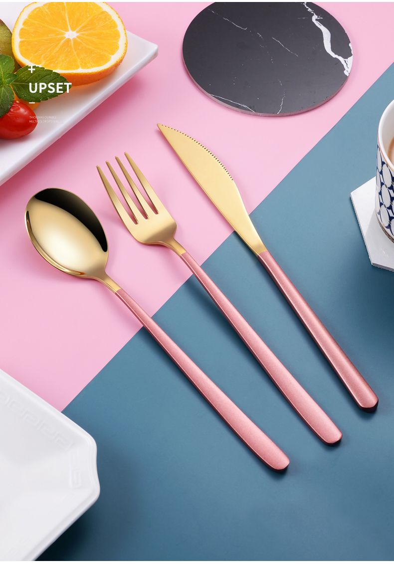 304不锈钢牛排刀叉盘子套装家用西餐餐具情侣网红ins刀叉勺三件套