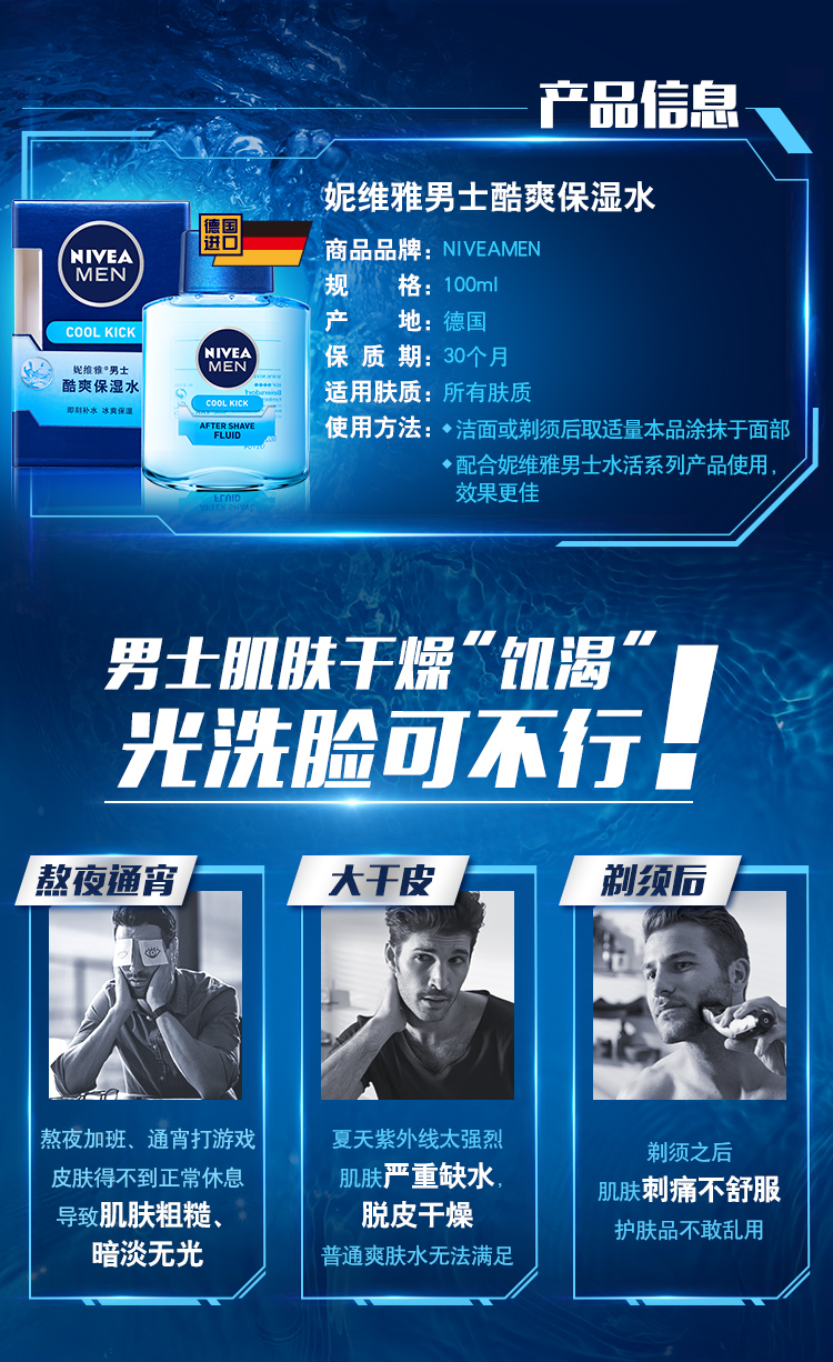 妮维雅男士滋润焕肤水保湿补水润肤控油爽肤水酷爽保湿水100ml