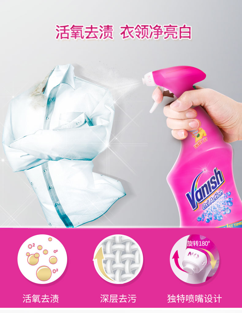 Vanish渍无踪衣领净强力去污白色彩色通用衬衫衣领袖口去渍喷雾剂