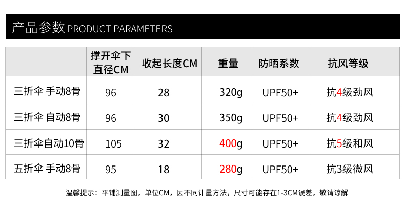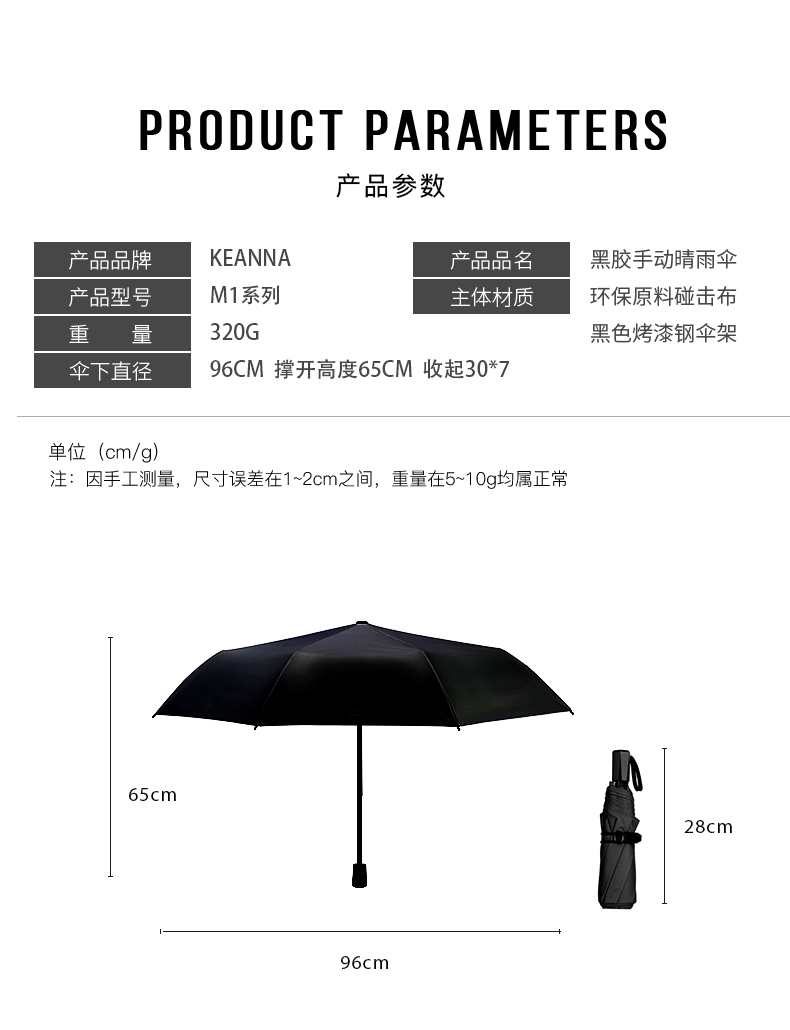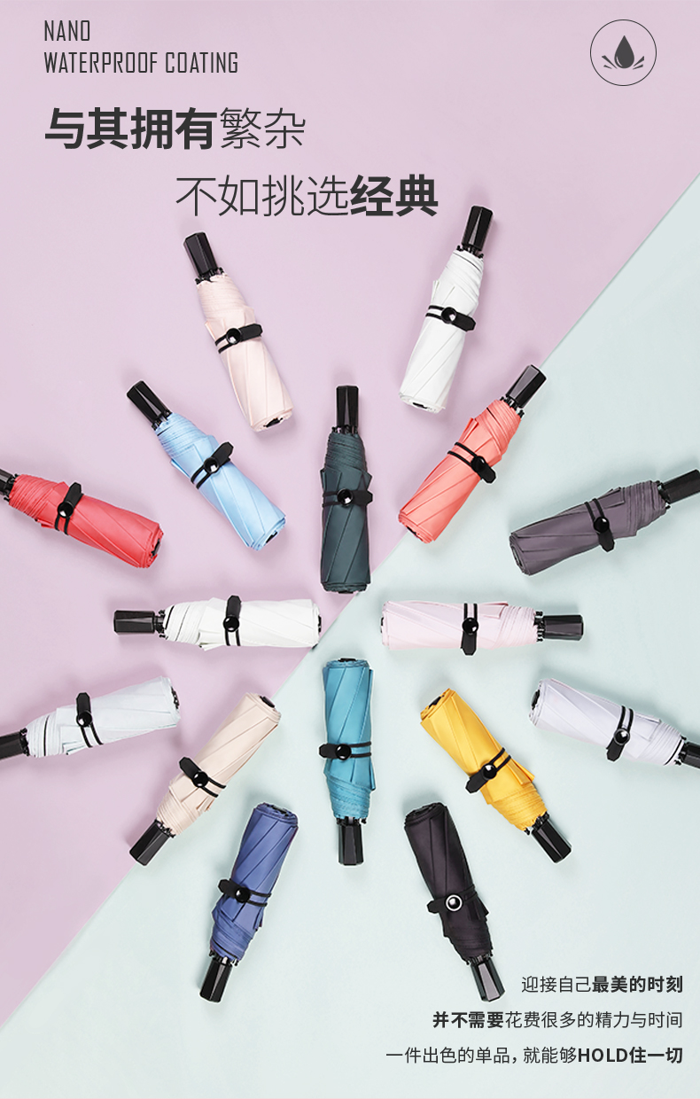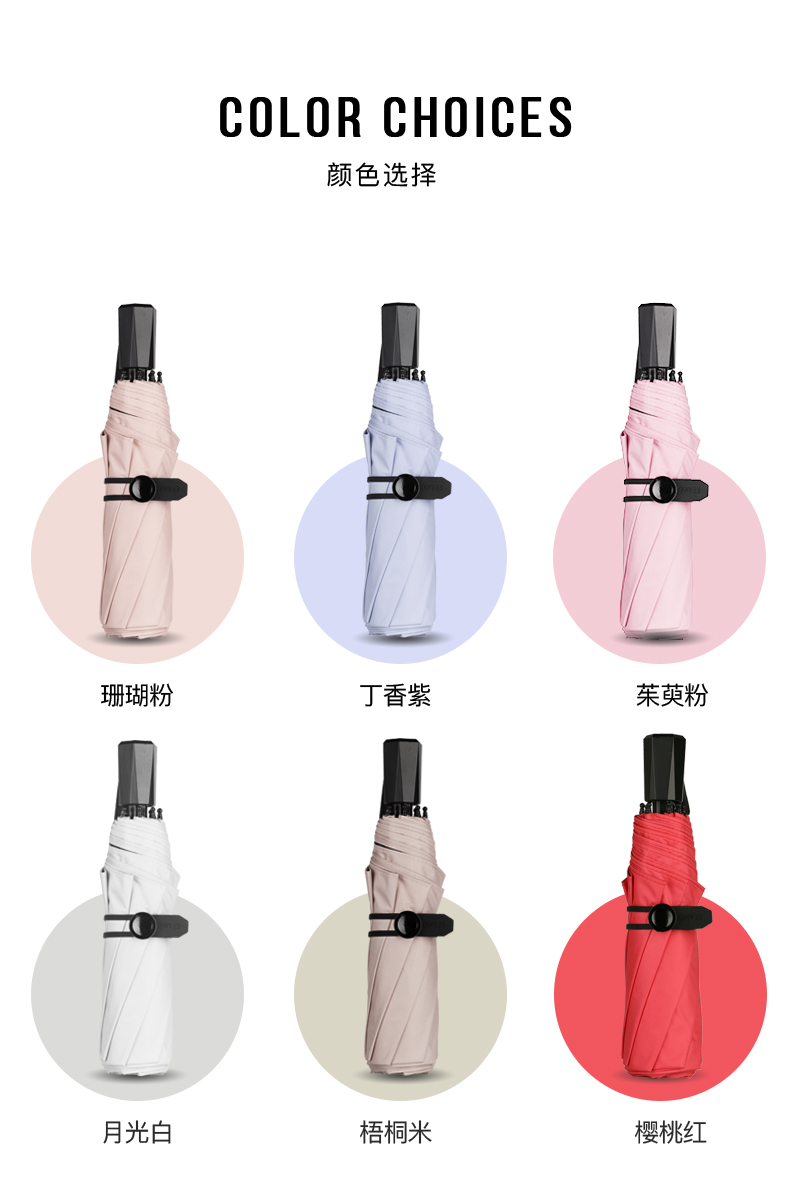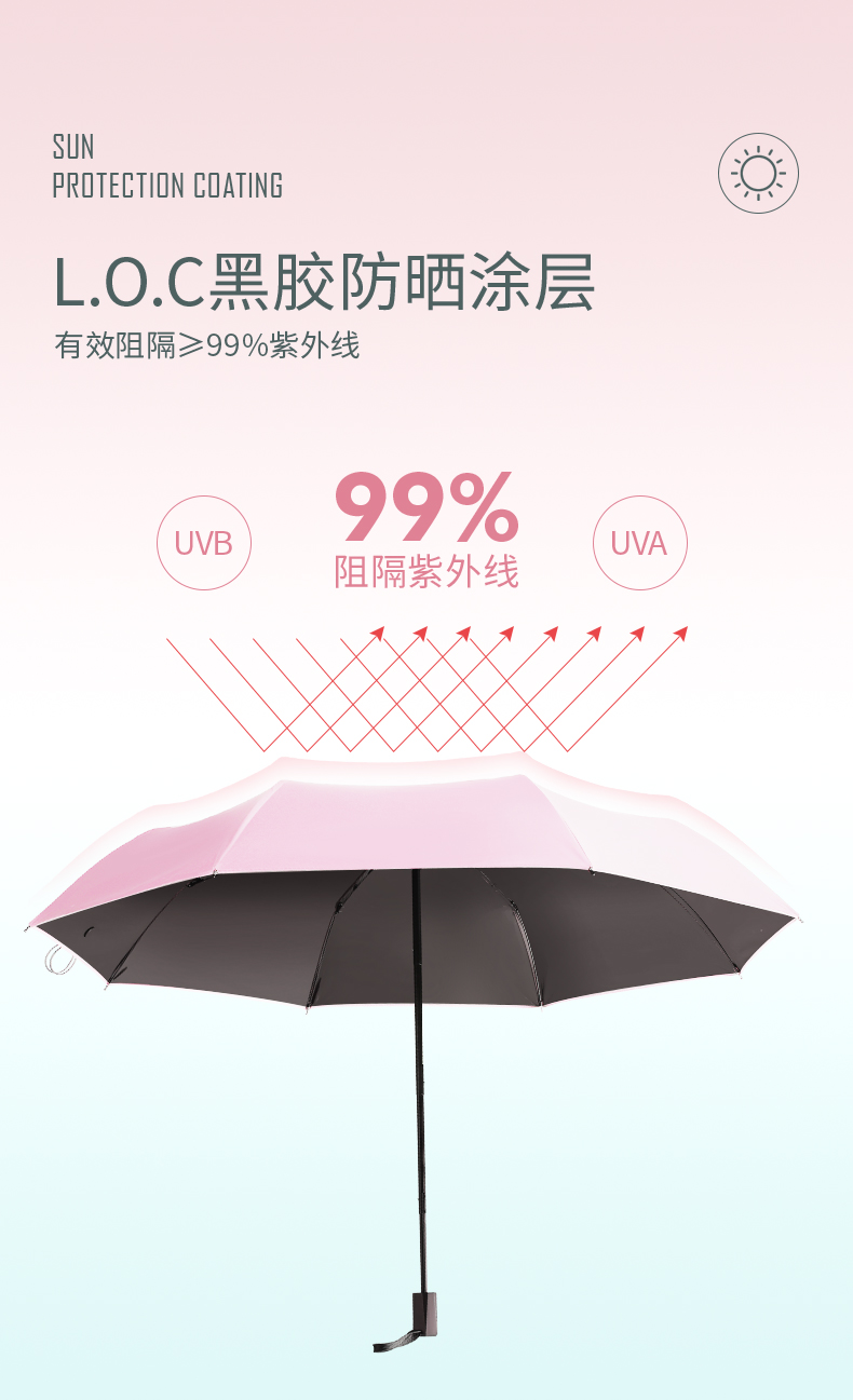 晴雨两用,强力抗风,折叠款携带方便,材质轻量,伞骨高韧,弯折不变形,伞布防水涂层,荷叶效应,一甩即干,紫外线阻隔≥99%!抓紧抢!【赠运费险】