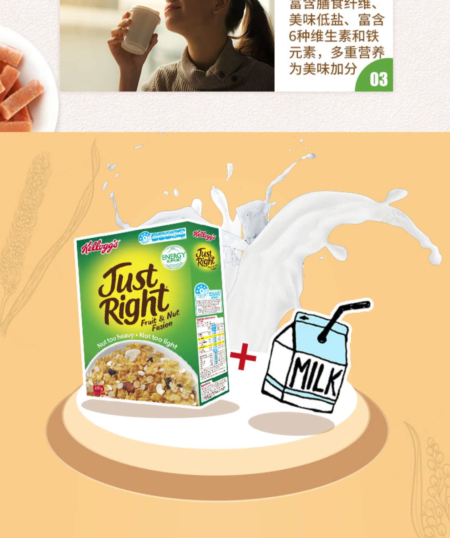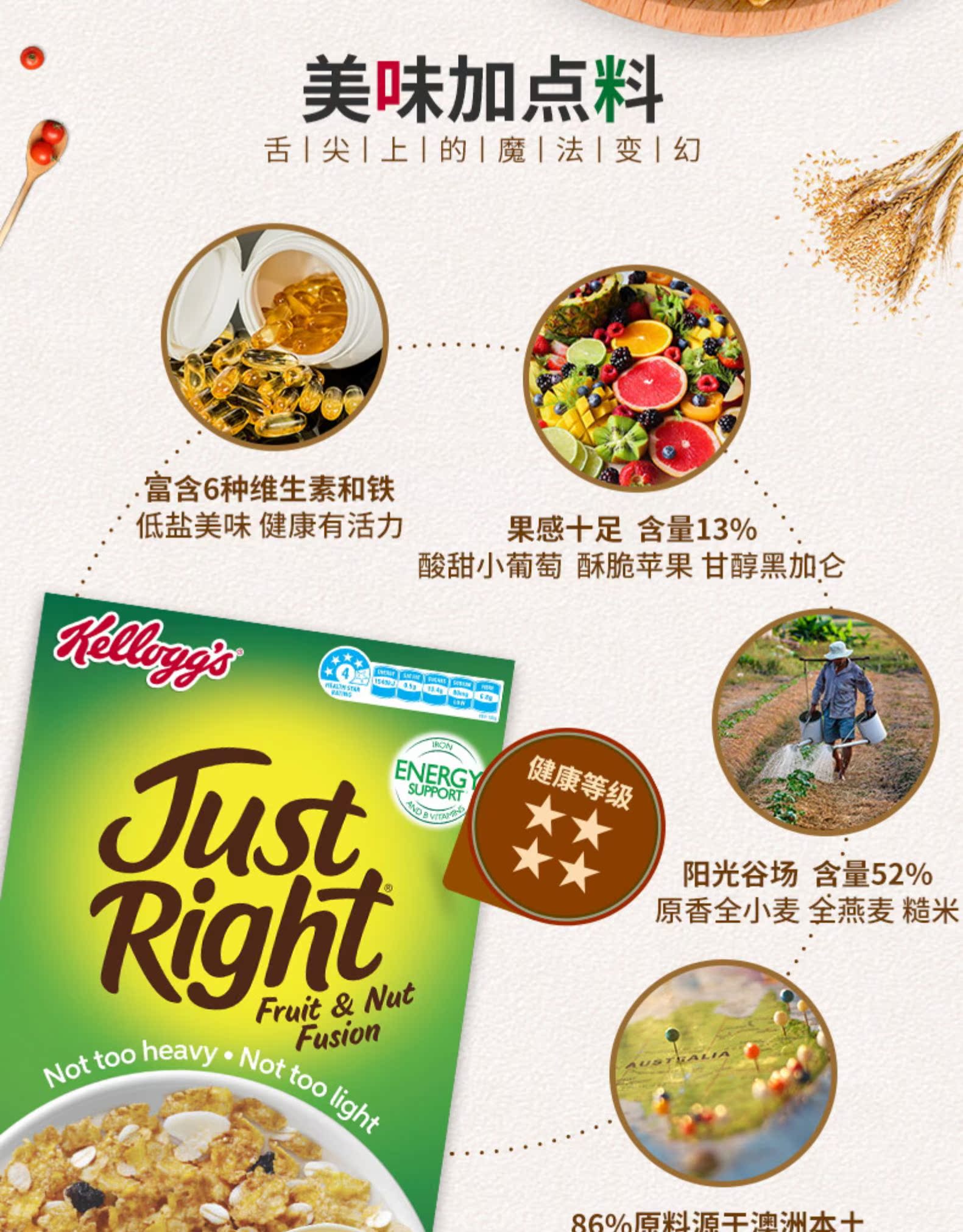 Kelloggs家乐氏正好麦片水果坚果融合480g即食冲饮谷物早餐玉米片