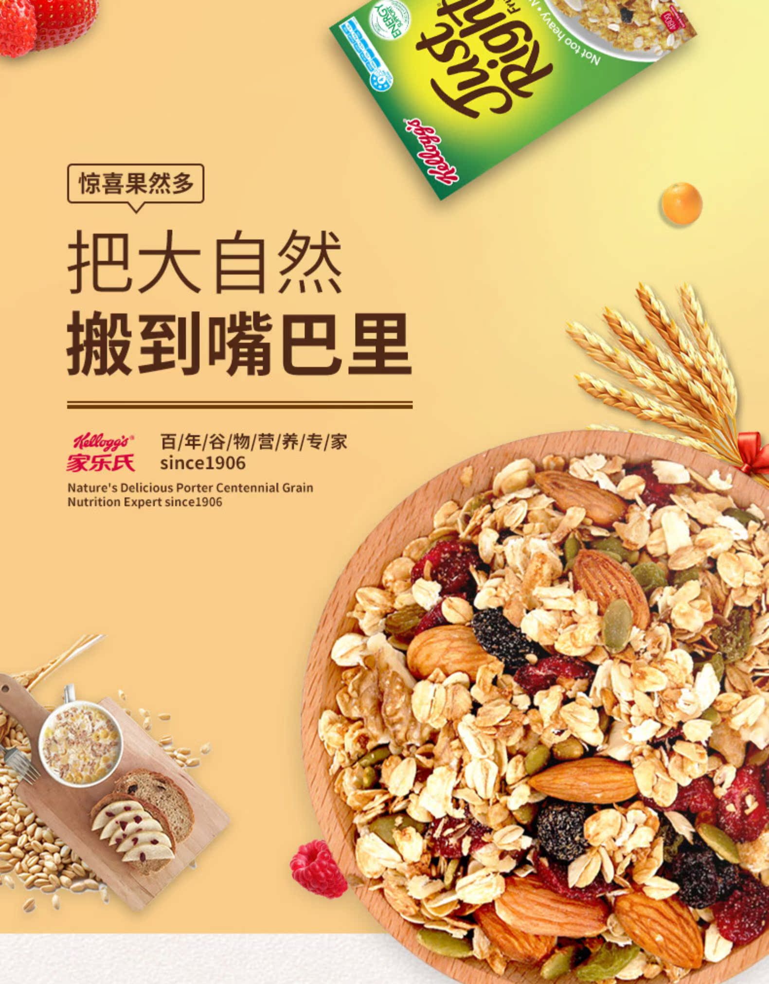 【拍两件55】原装进口,家乐氏即食麦片,0添加更健康,水果坚果融合,480g即食,均衡营养,无可匹敌的好吃,速来抢购。