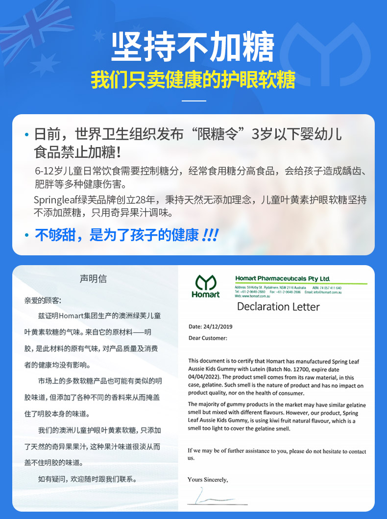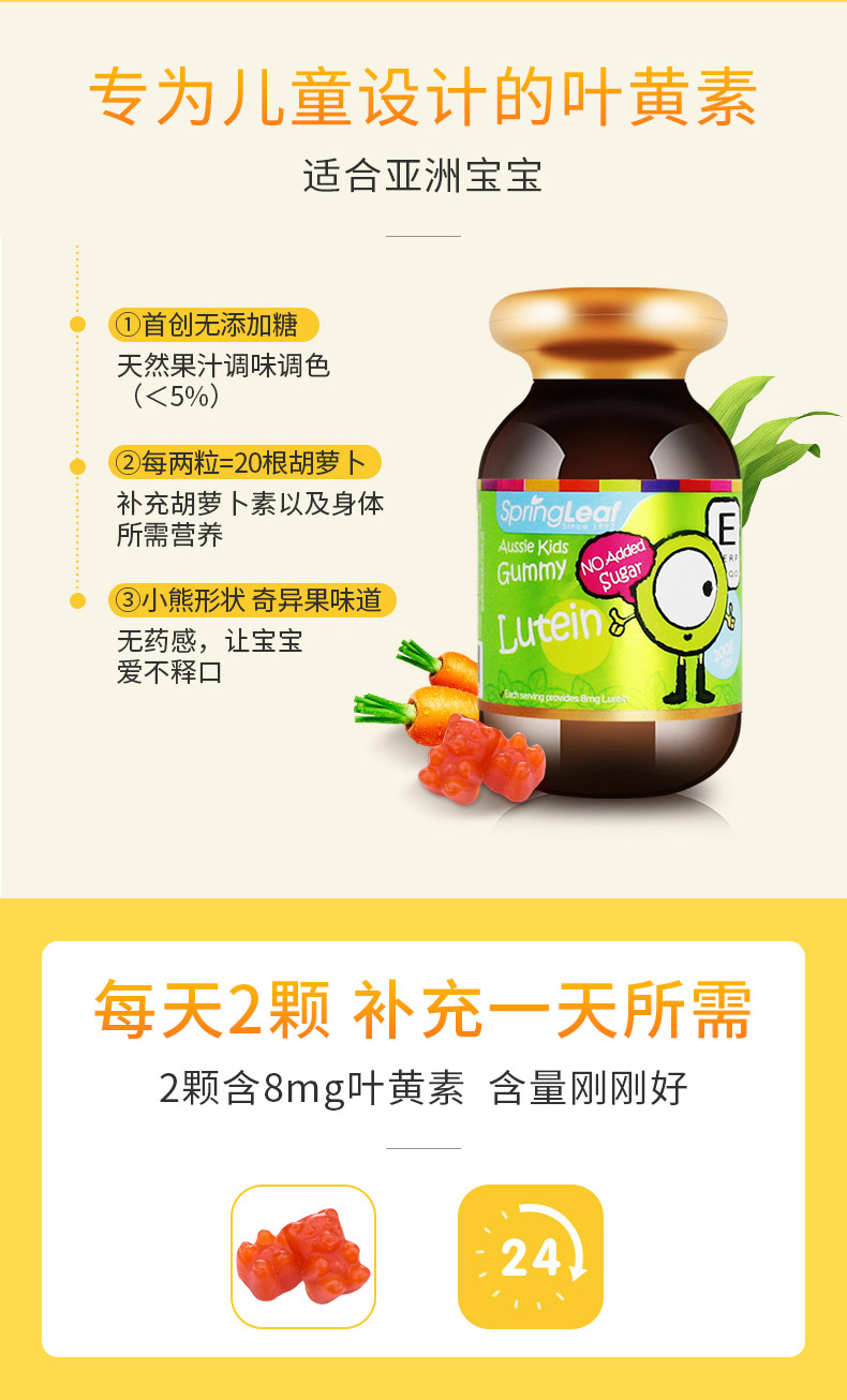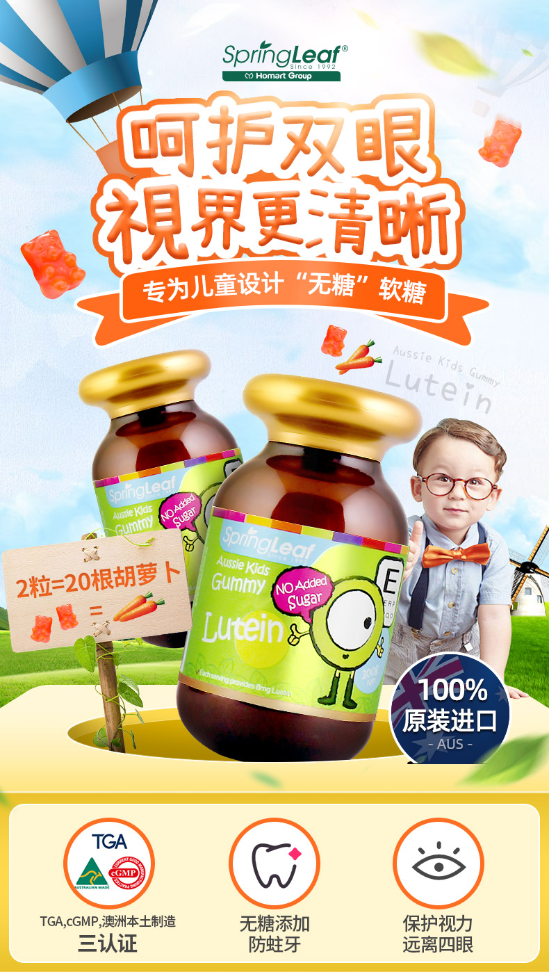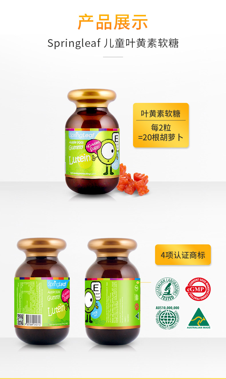 Springleaf澳洲儿童护眼保健品儿童叶黄素软糖护眼片叶黄素近视