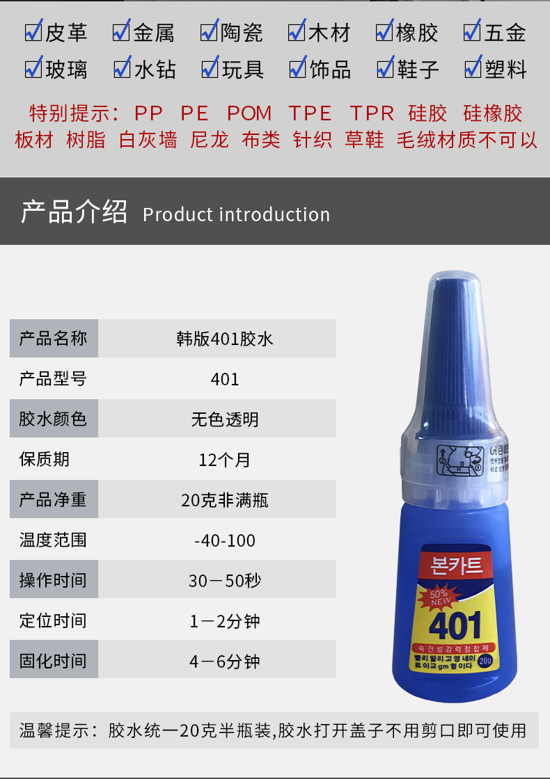 韩版401胶水强力万能正品快干胶补鞋胶水粘鞋专用502美甲卸甲粘木材塑料金属陶瓷玻璃520多功能手工鞋401胶水