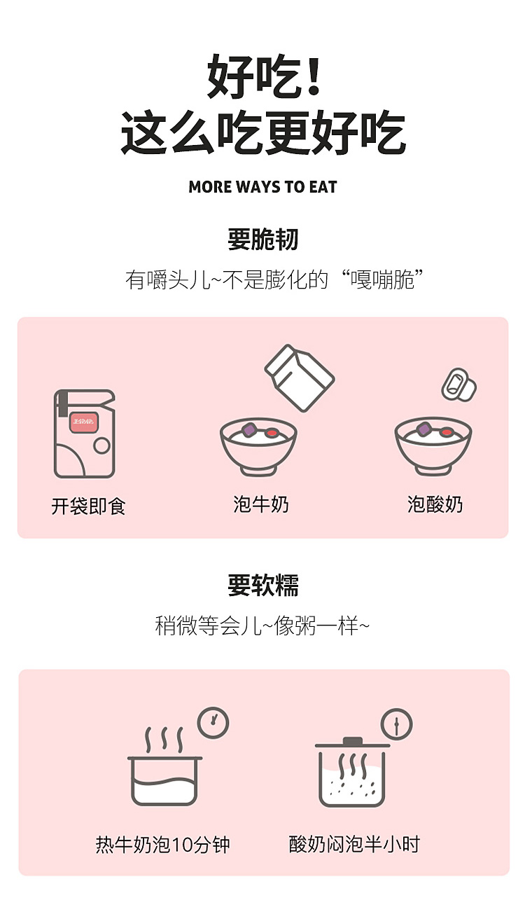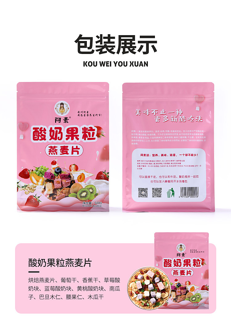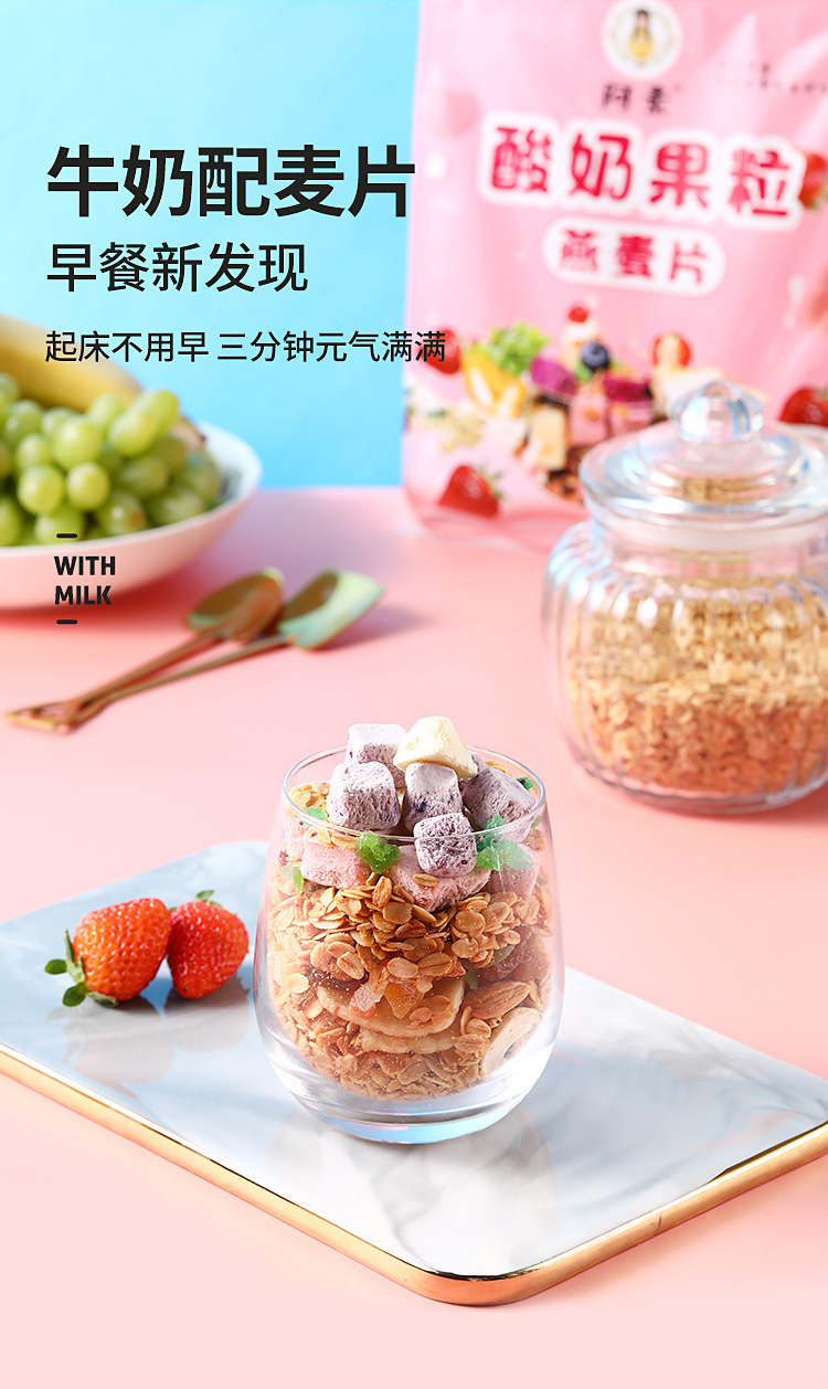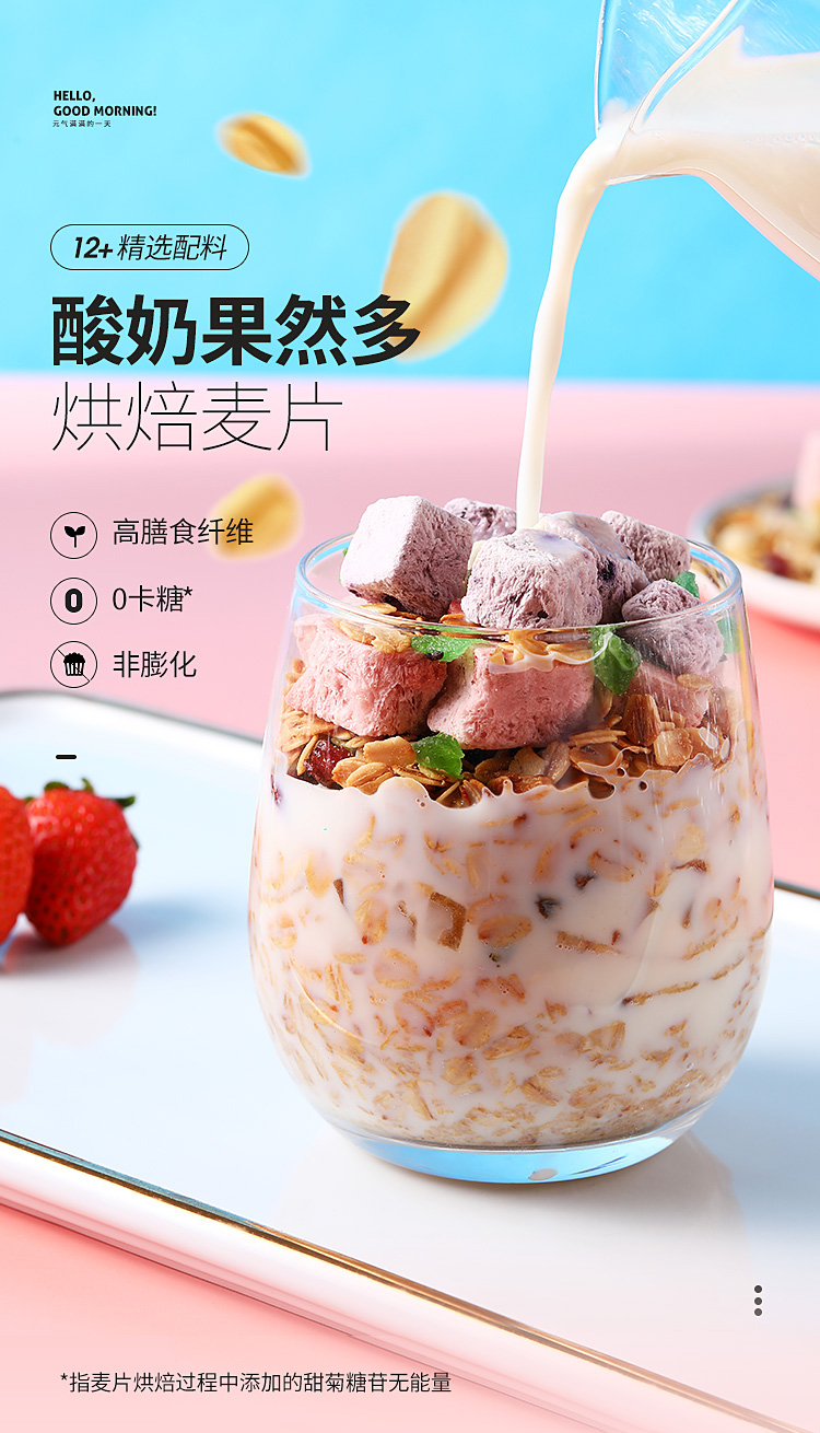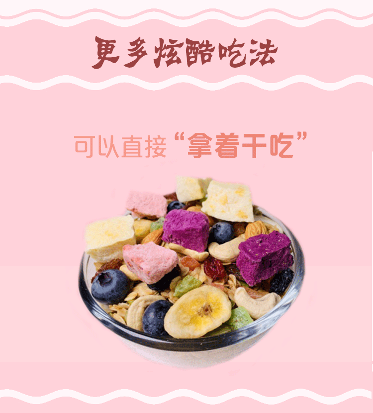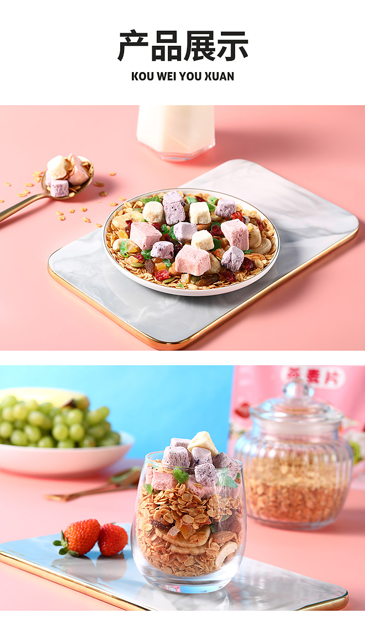 即食冲饮谷物,搭配缤纷果干,口感香甜,营养丰富!