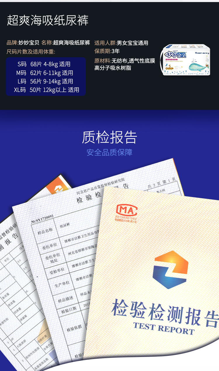 妙妙宝贝超薄透气纸尿裤S/M/L/XL男女婴幼儿宝宝通用新生儿尿不湿