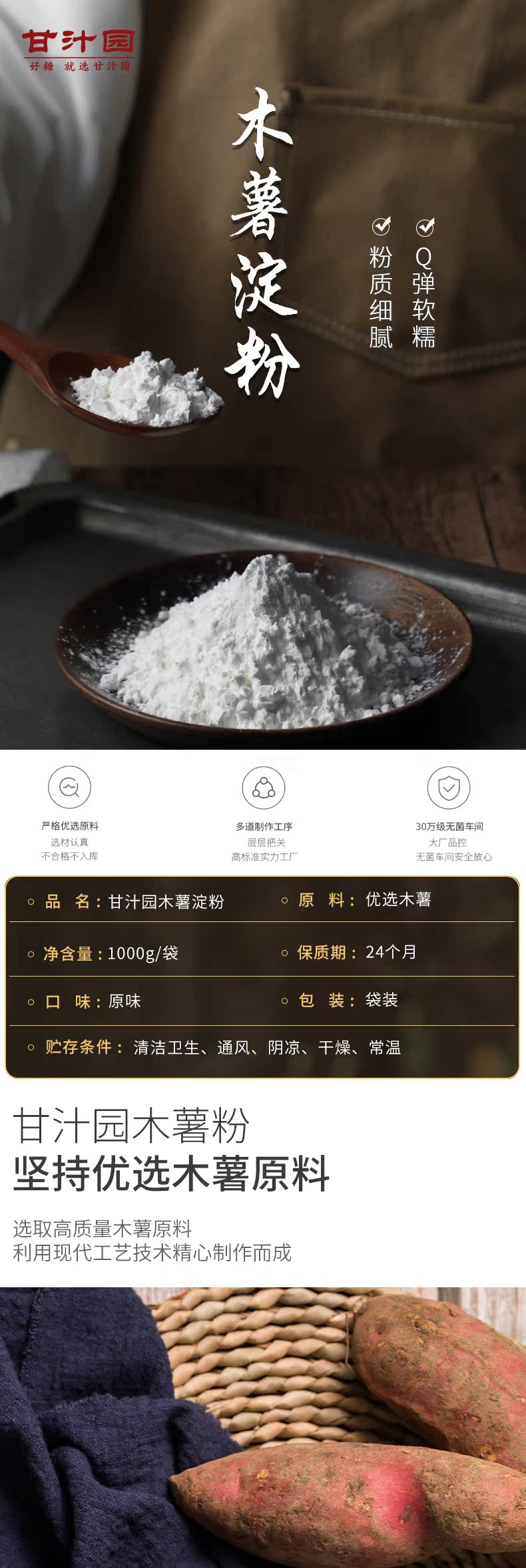 【1000g装】甘汁园木薯粉芋圆粉家用珍珠圆子奶茶手工木薯淀粉