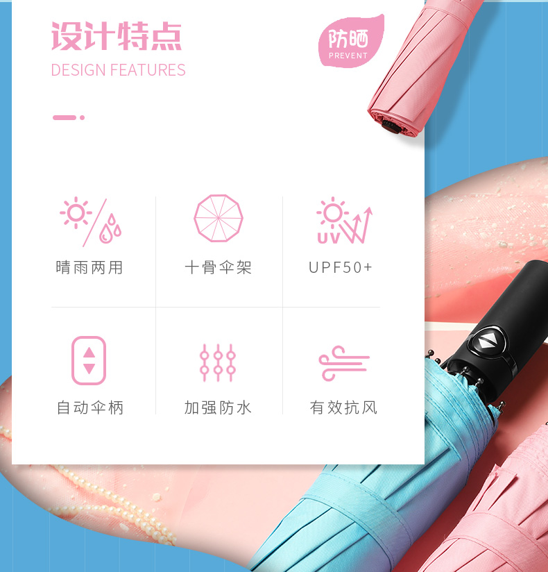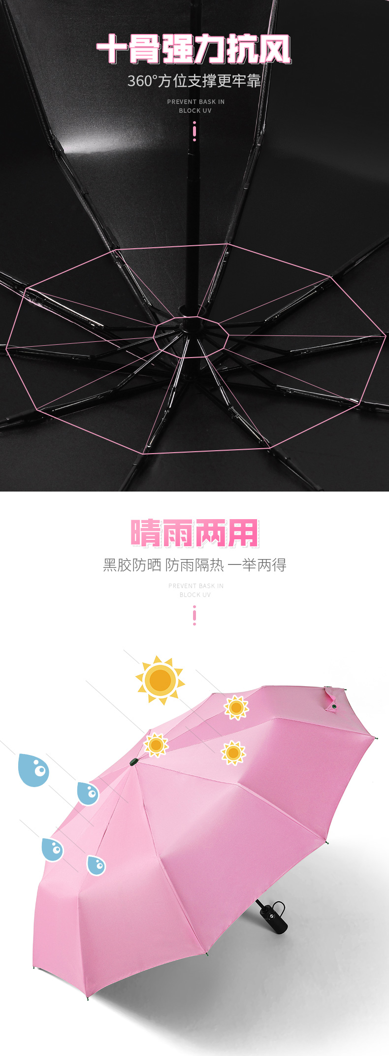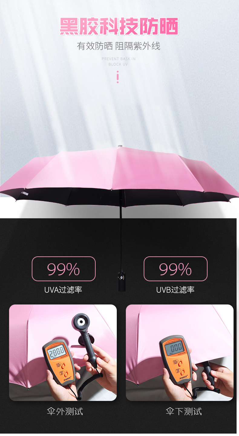 【抖音爆款】加厚黑胶,加厚精钢,顺滑握感,风雨连载,有效坑风,晴雨两用,出门只需要一把伞,漂亮精致,携带方便,黑胶防晒让你享受美好时光~【赠运费险】