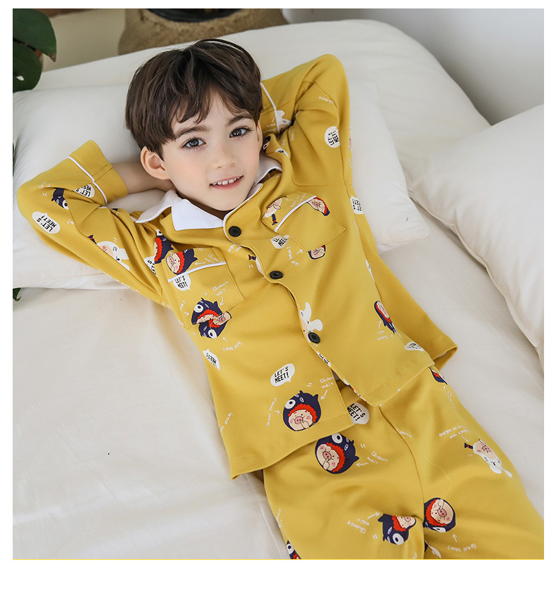 男童睡衣春秋季纯棉长袖大童男孩薄款宝宝亲子儿童家居服套装秋冬