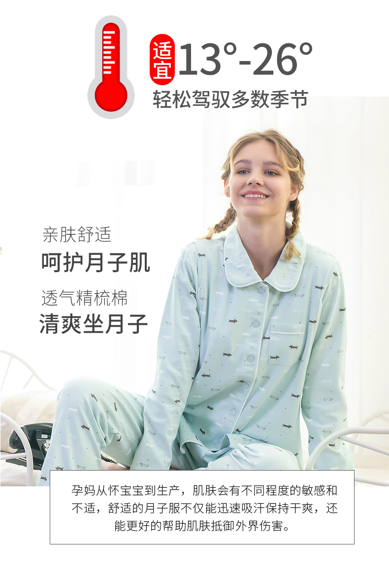 【持续恒温13-26°】40支精梳棉,透气舒爽,呵护月子爱出汗的问题,清爽坐月子。竖立隐蔽哺乳,裤腰松紧带设计,是一款孕期+产后都可以穿的居家睡衣。赠运费险