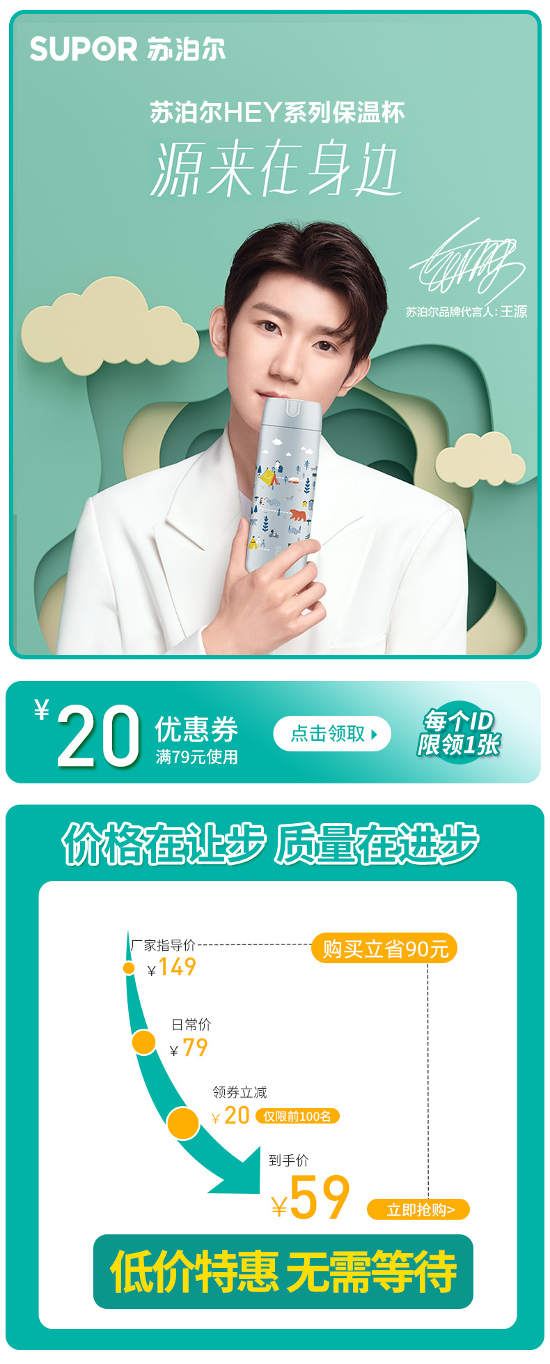 苏泊尔品质!七层工艺,304不锈钢坚固如一,特制中空层冷暖保温,四色任选!赶紧给自己买一个吧【赠送运费险】