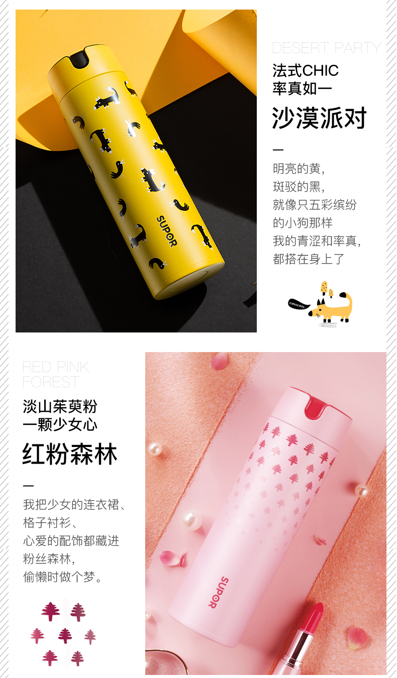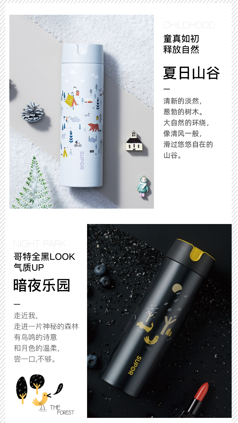 苏泊尔保温杯男女士大容量学生ins简约便携式不锈钢水杯子直饮杯