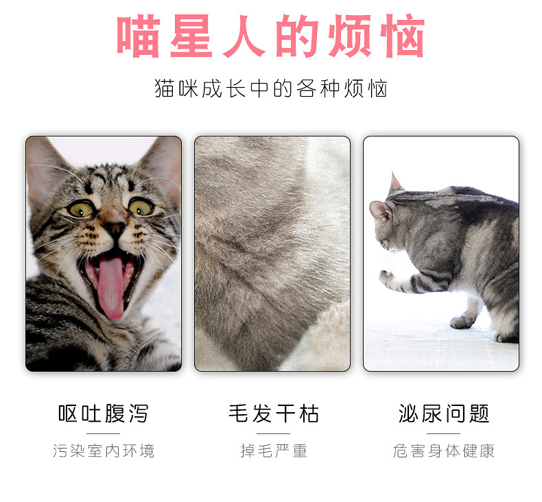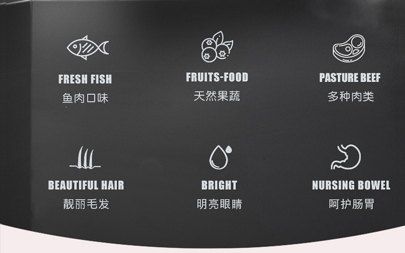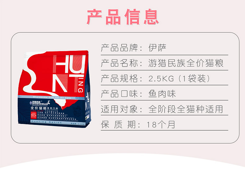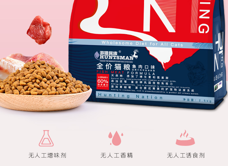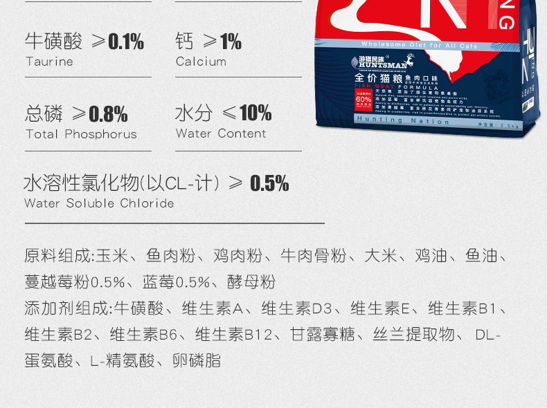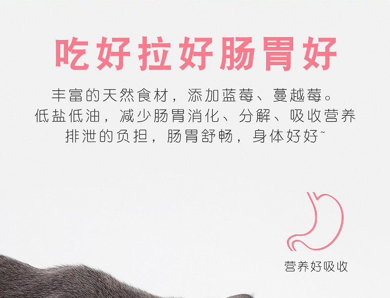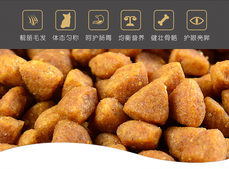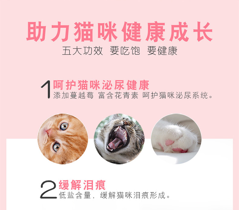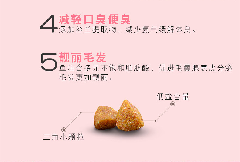 添加益生元,呵护肠道,5种鱼配方,营养健康,具有美毛明目的效果,低盐保护泌尿。