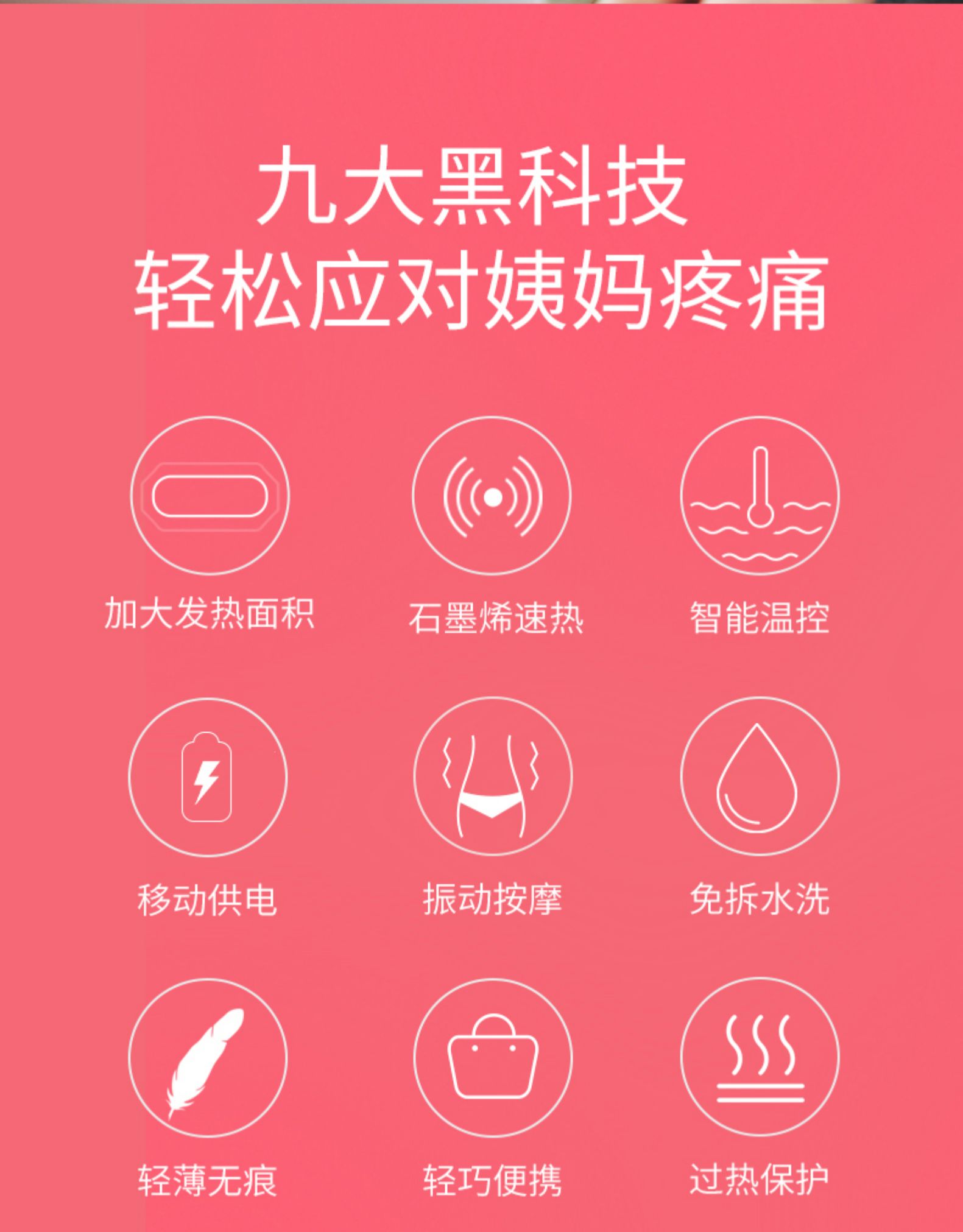 【1年质保,只换不修+30天无效退款】隐形贴身,暖宫暖身暖胃,缓解经期疼痛,小腹坠胀,腰部酸痛!充电便携,随时随地可用,特殊时期给你温暖的呵护,拯救万年姨妈痛