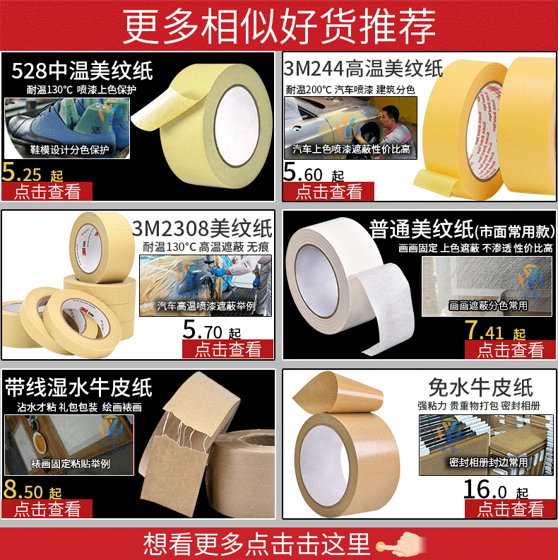 3M244美纹纸胶带 美纹纸胶带无痕手撕 耐高温3D打印烤箱用 汽车喷漆喷涂遮蔽胶带船舶胶纸分色和纸胶带批发