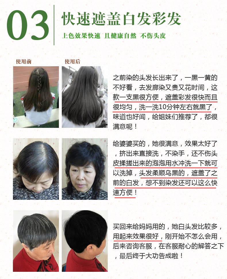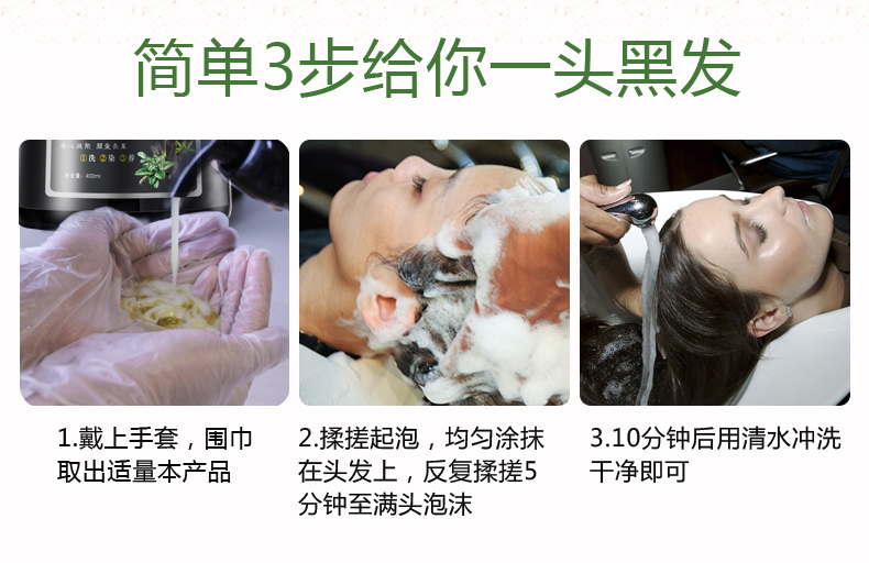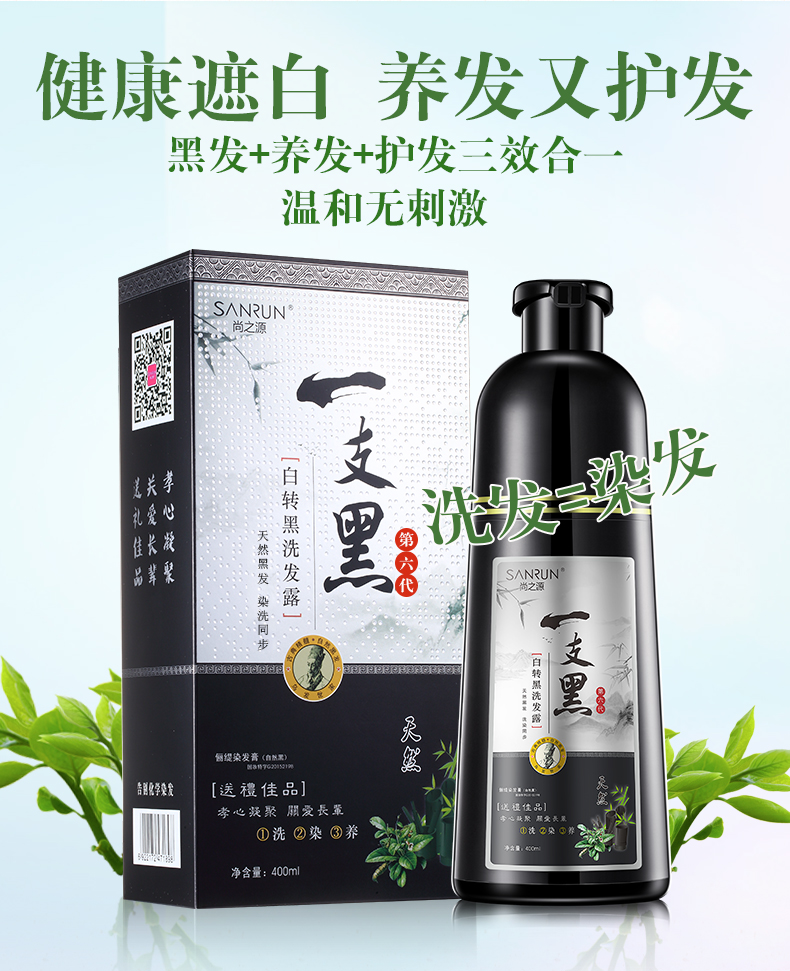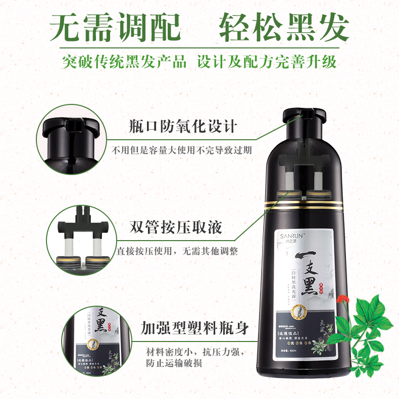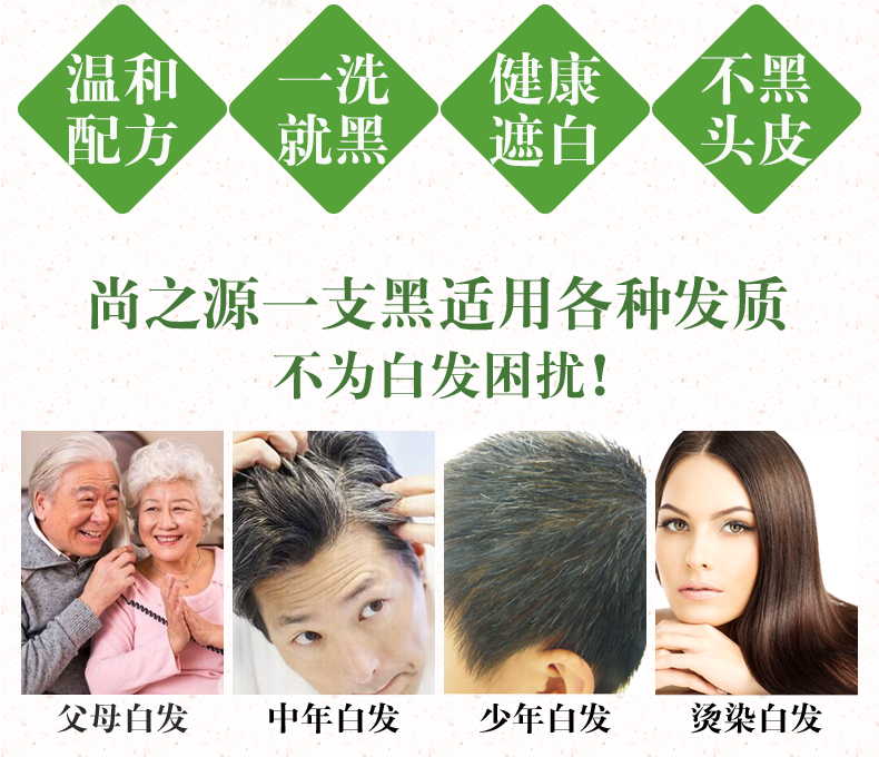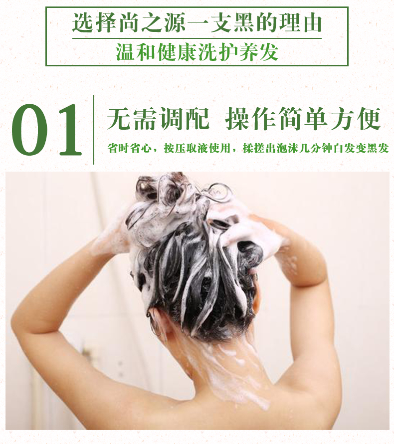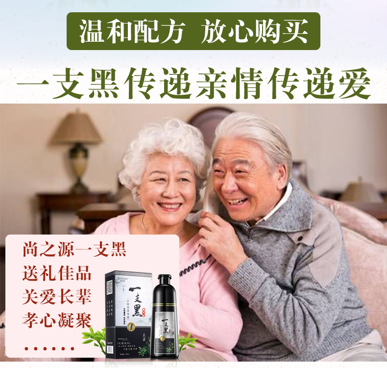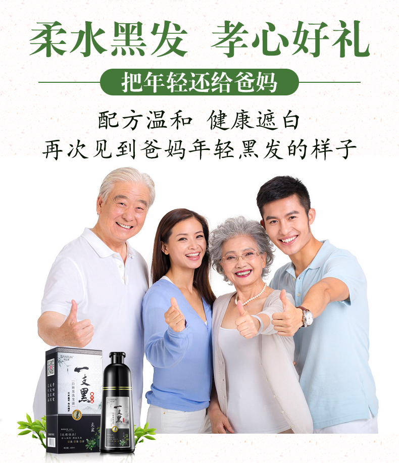 强烈推荐,天然植物温和配方,无需调兑,一洗即黑,黑发+养发+护发三效合一,健康遮白,自然黑发不黑头皮,安全不刺激,男女通用,重现爸妈年轻模样!【赠运费险】