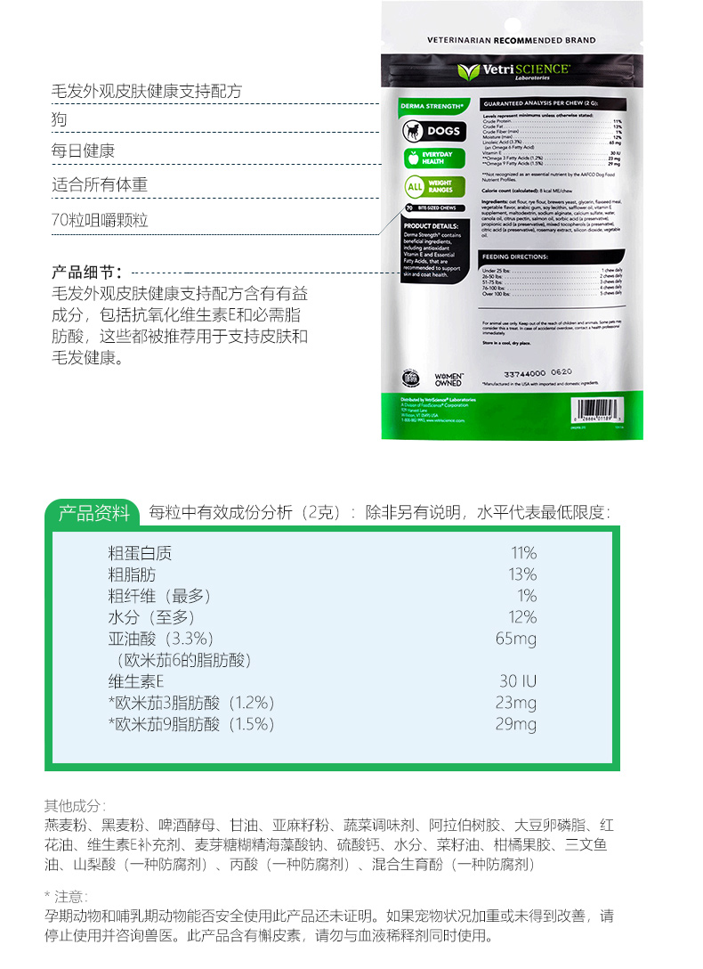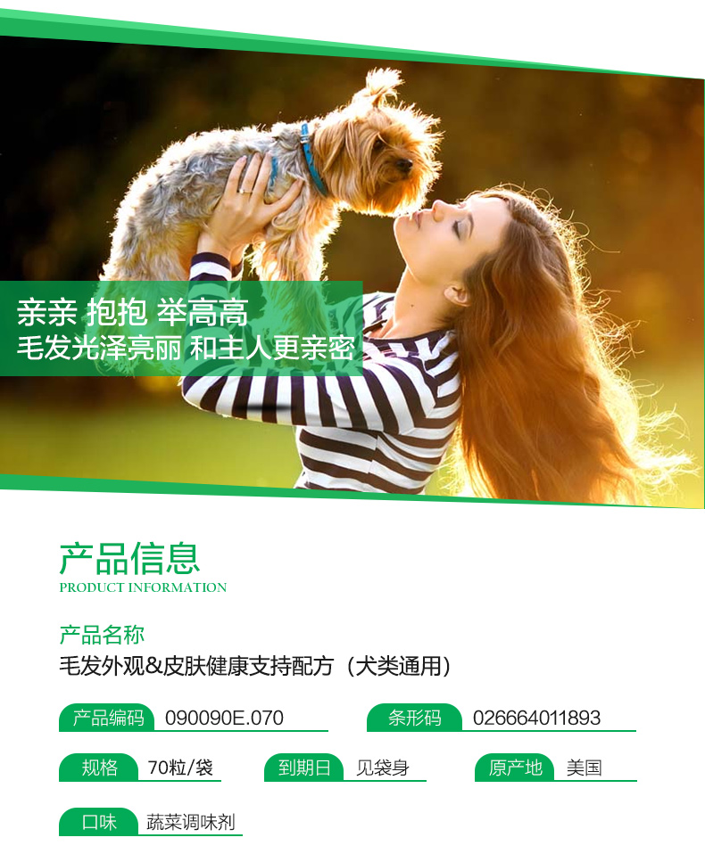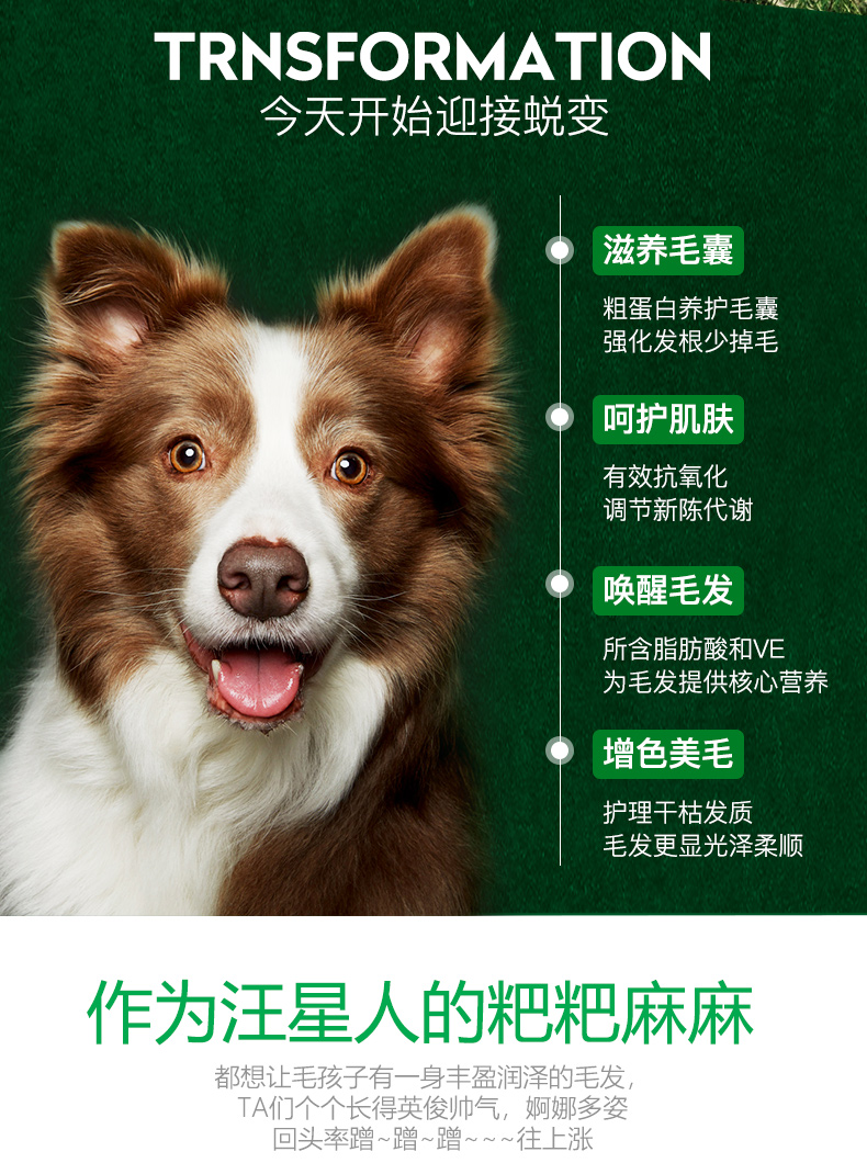 天猫海外旗舰店,针对皮肤敏感,皮屑多的狗狗,提升皮肤抵抗力,辅助治疗狗狗多重皮肤病,美毛护肤,改善脱毛
