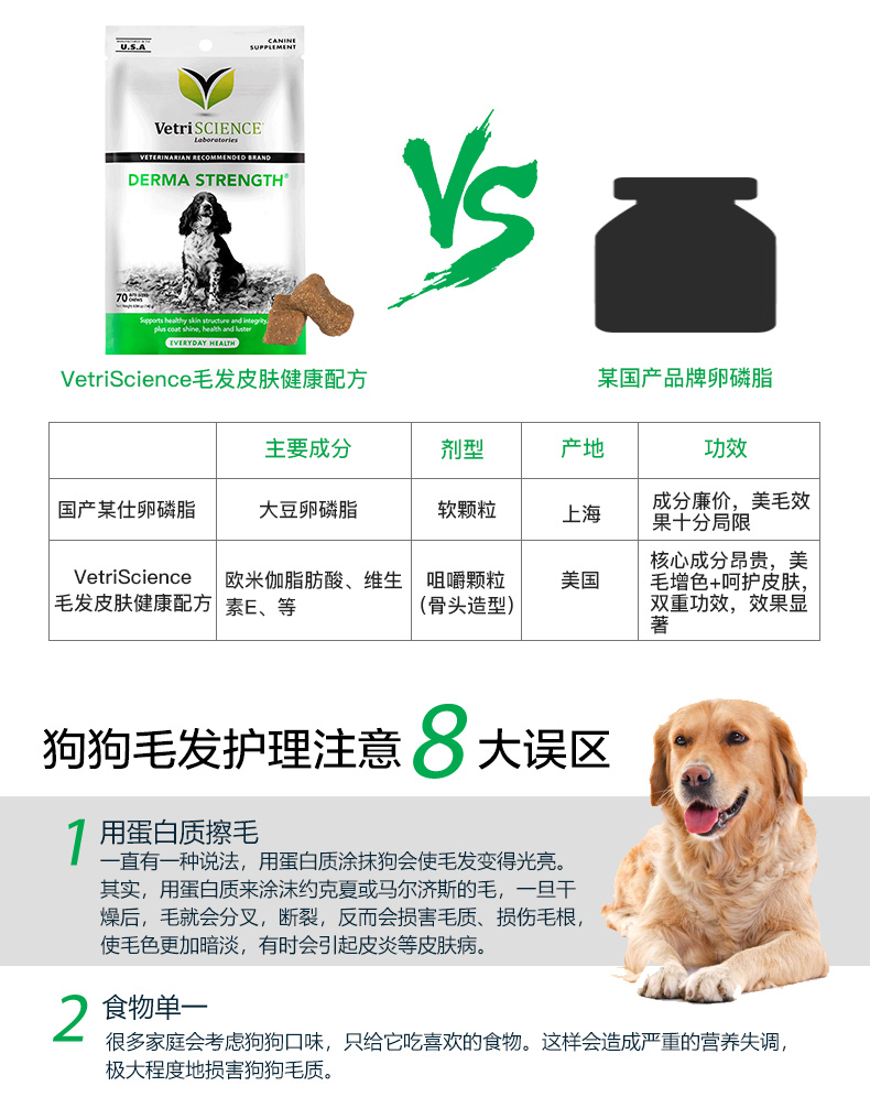 美国VetriScience宠物卵磷脂 狗狗美毛亮毛软磷脂改善脱毛营养膏