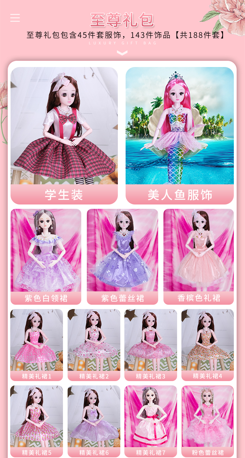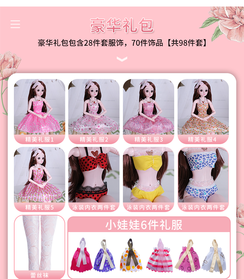 60厘米芭比丹路大号公主超大仿真洋娃娃女孩单个玩具套装大礼盒布