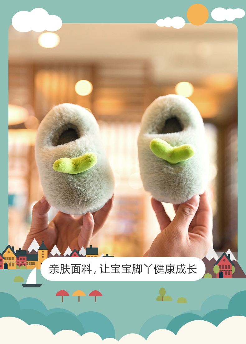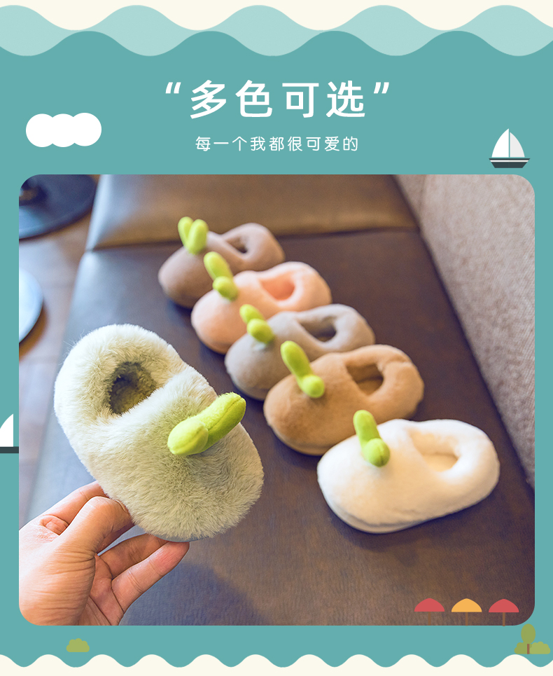 宝宝棉拖鞋1-3岁2可爱小树苗男童女童室内居家鞋卡通儿童包跟棉鞋