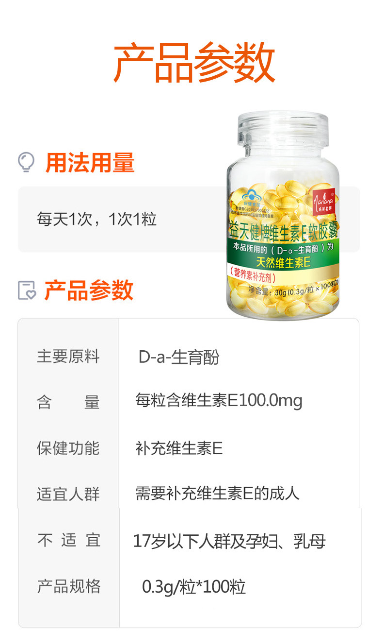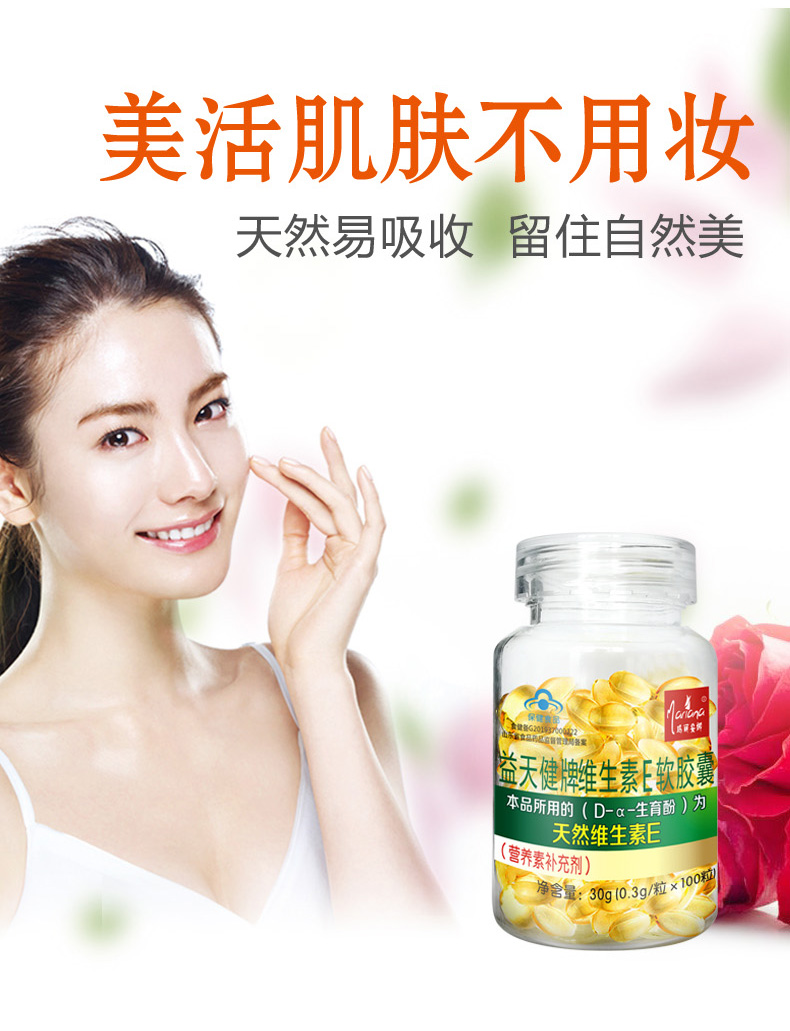 【买2送1,实发3瓶同款,超划算!】天然维E,呵护美肌,维E高含量,每粒100mg,配方科学,含西班牙进口橄榄油,更易吸收,留住自然美【赠运费险】