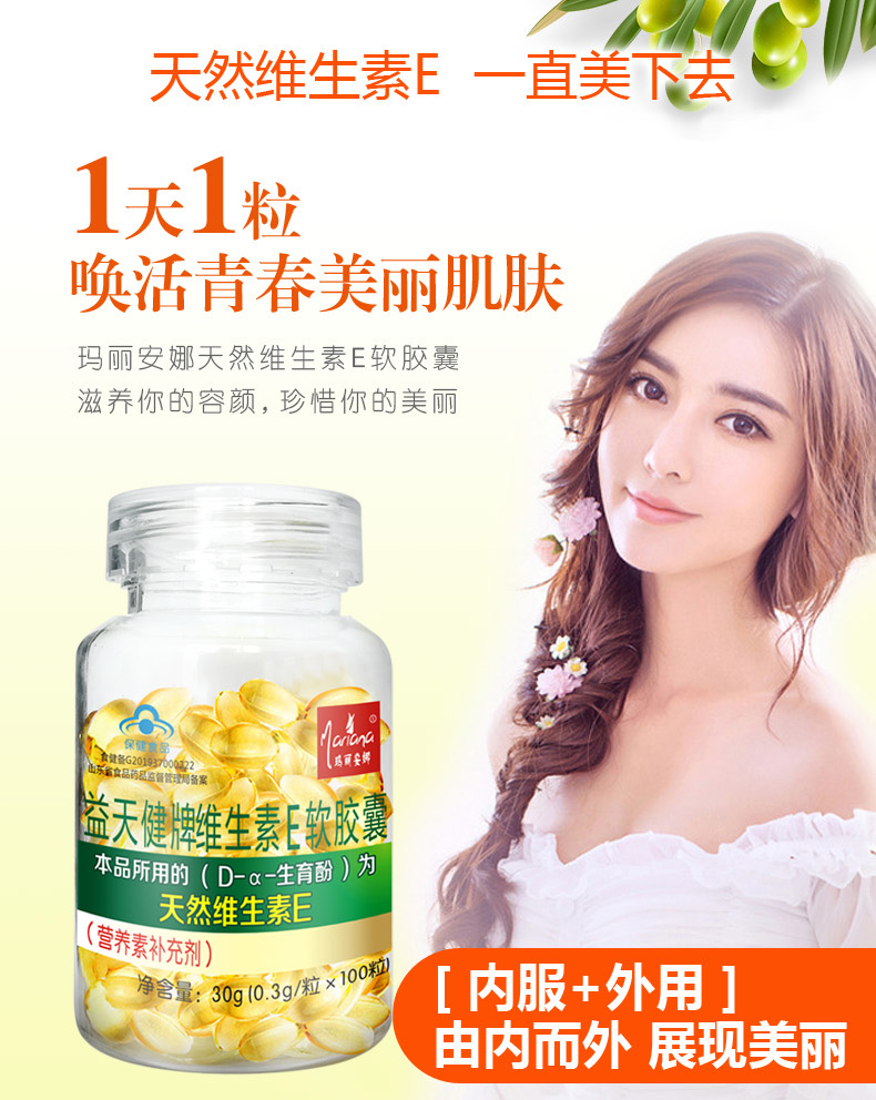 【天然VE+橄榄油】 维生素e软胶囊内服外用涂脸部vc维e面部型痘印