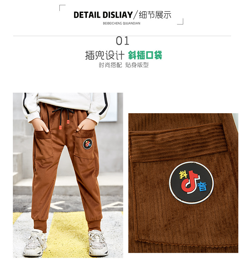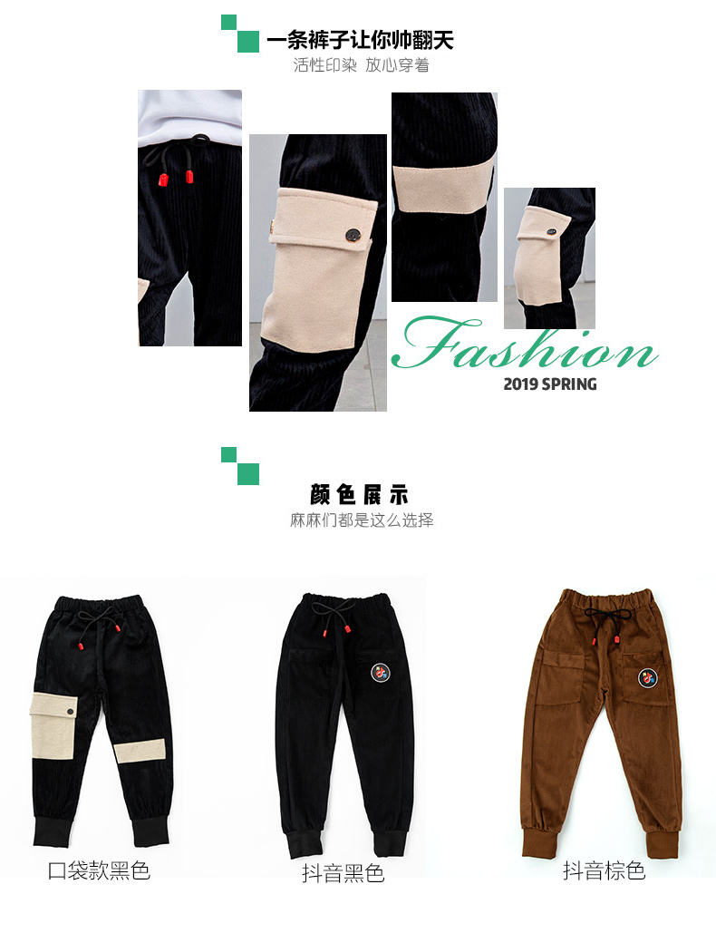 男童裤子2019新款韩版哈伦裤春秋款休闲长裤儿童灯芯绒工装裤男潮