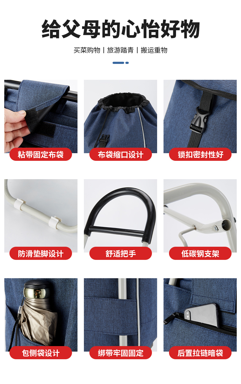 家用买菜小推车,老人手拉爬楼梯购物车,超市购物必备款,速度抢!!【赠运费险】