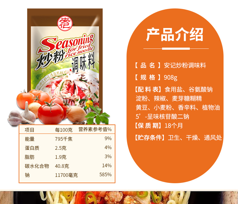 安记炒粉调料商用炒粉料专用炒河粉炒饭料炒面炒菜调味料908g*1包
