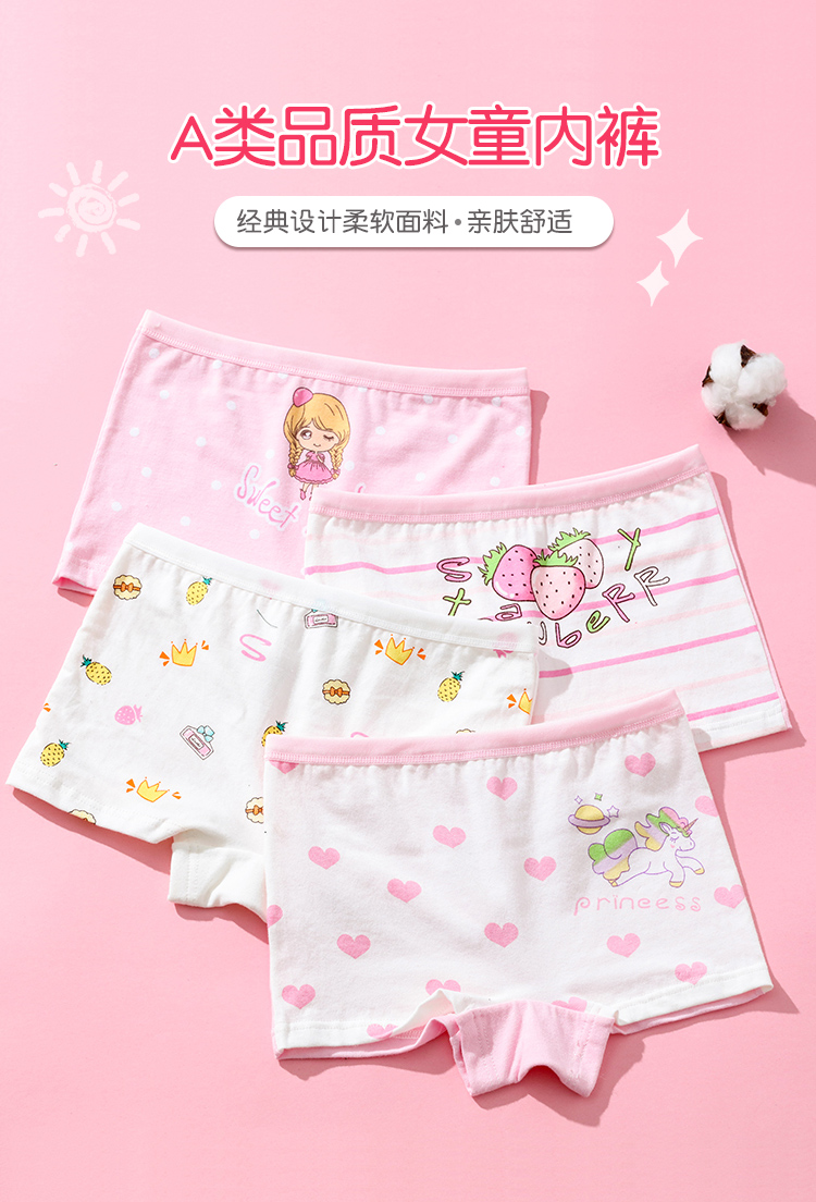 儿童内裤女童纯棉婴儿平角三角1女孩小孩2四角3全棉6岁女宝宝短裤