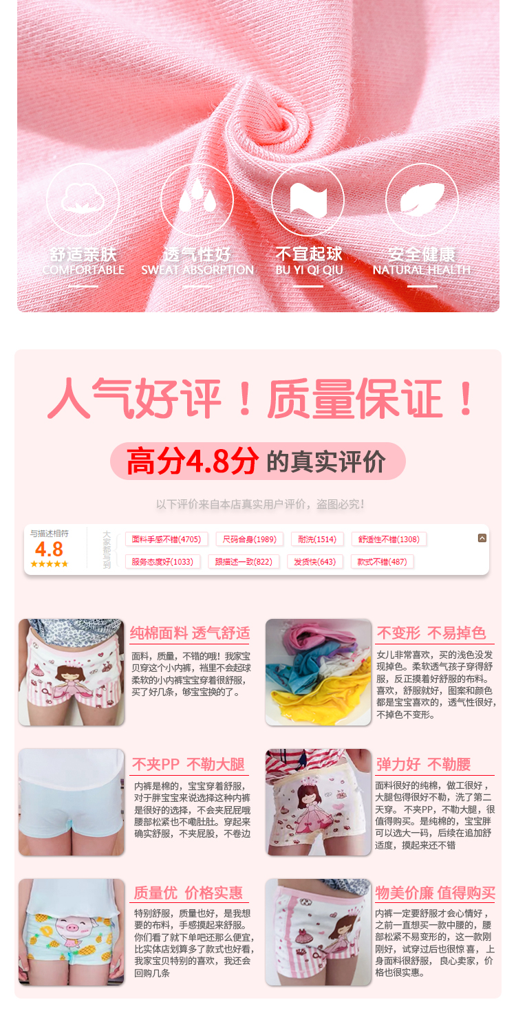 【月销60000组+10w好评】神价!A类品质,款式丰富,三角平角可选,纯棉面料,亲肤透气,不夹PP,适合0-15岁女宝宝,无骨拼接,双层裆部。