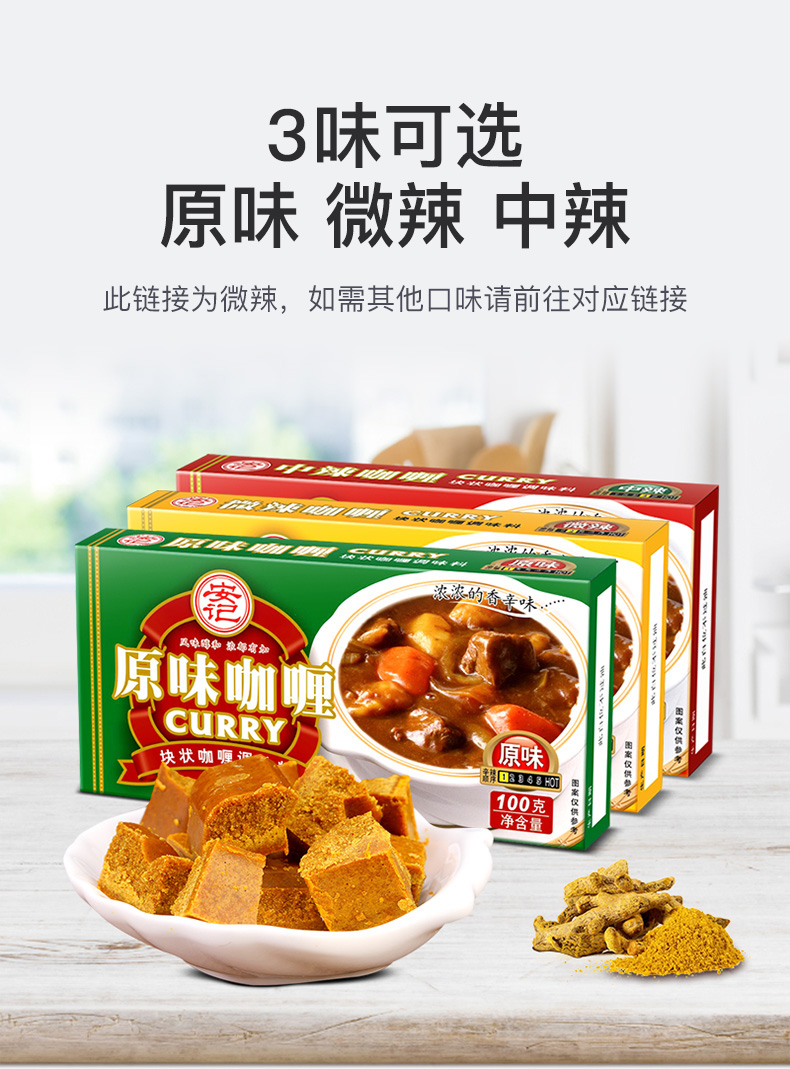安记黄咖喱块调味料咖喱膏微辣家用咖喱酱即食拌饭泰国咖喱100g*3