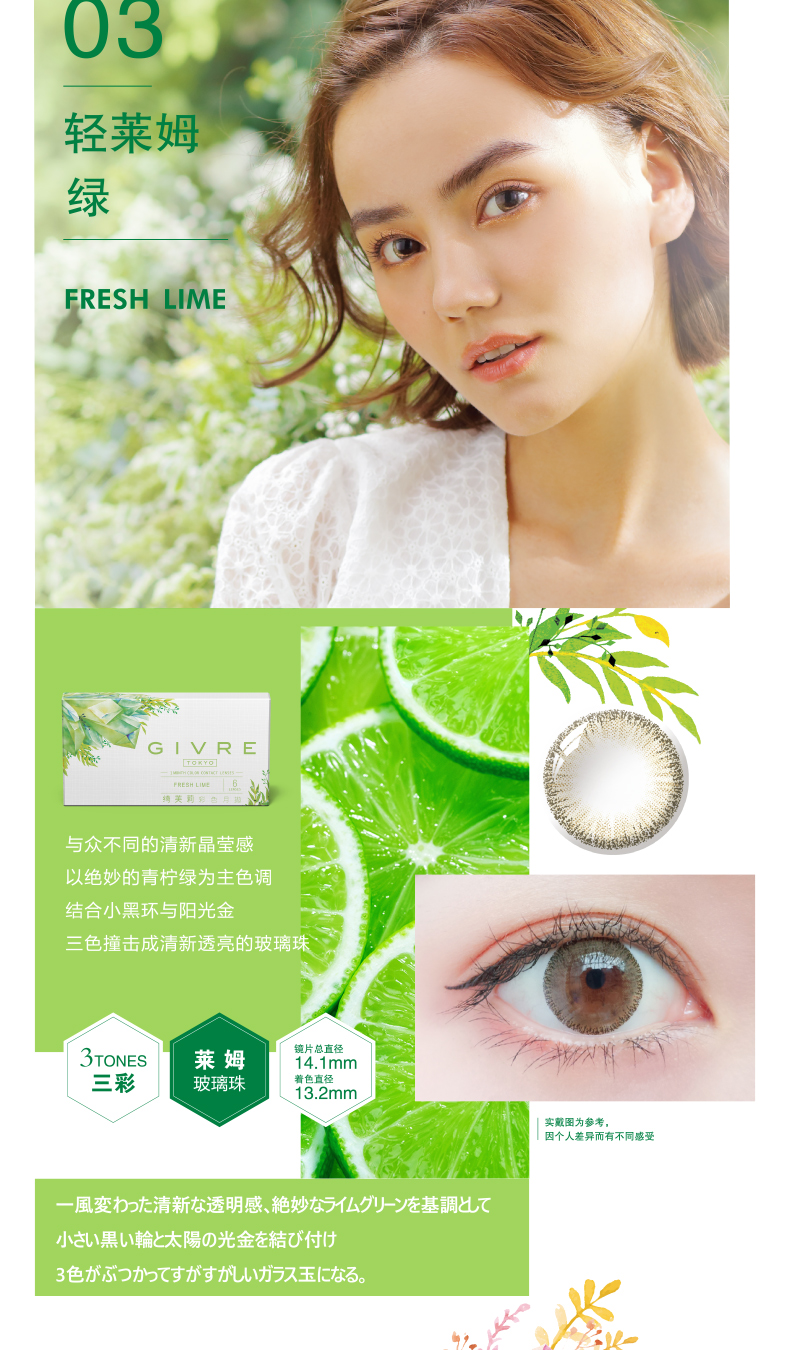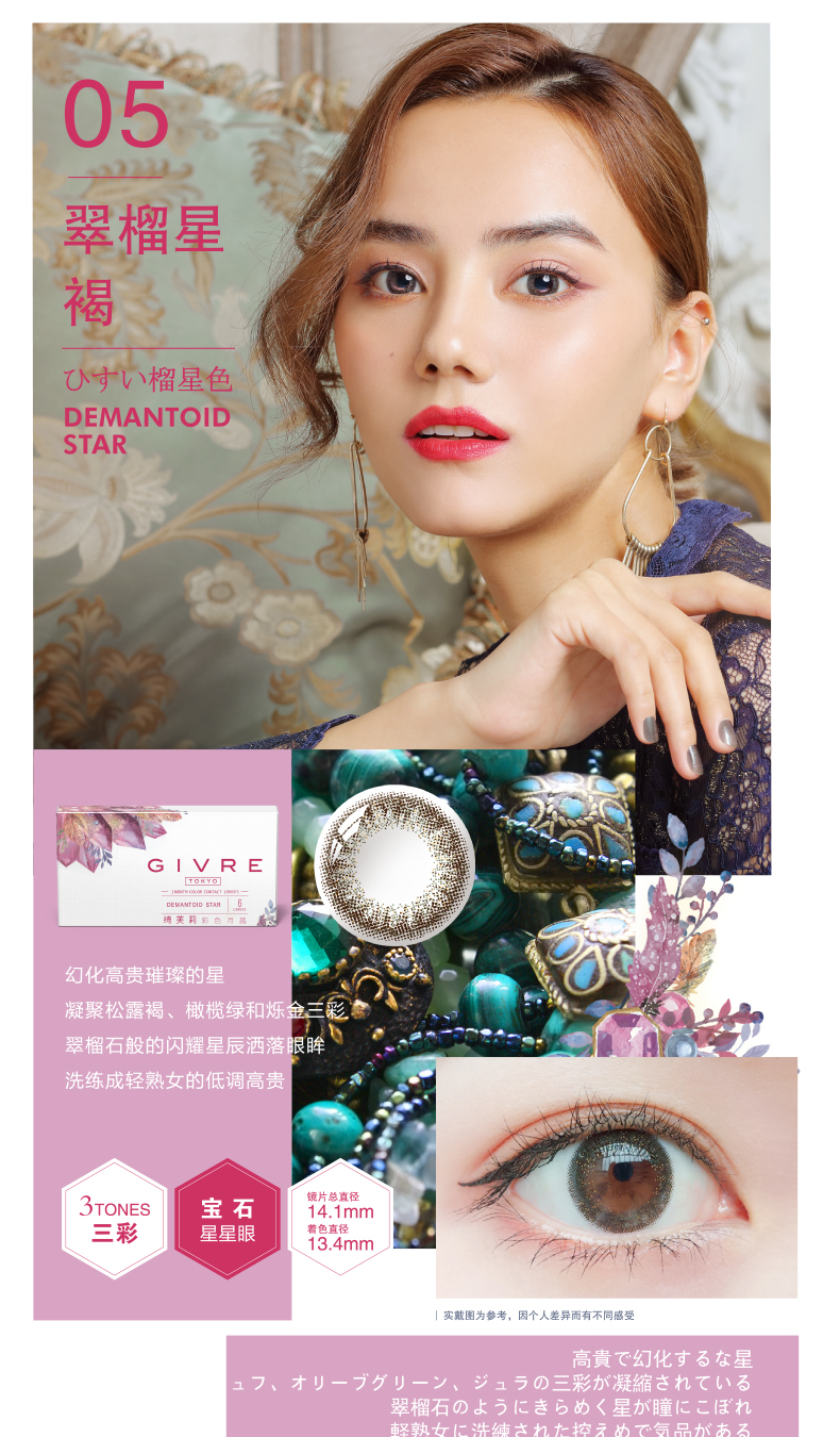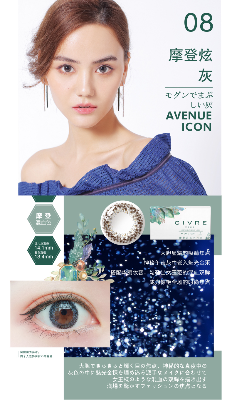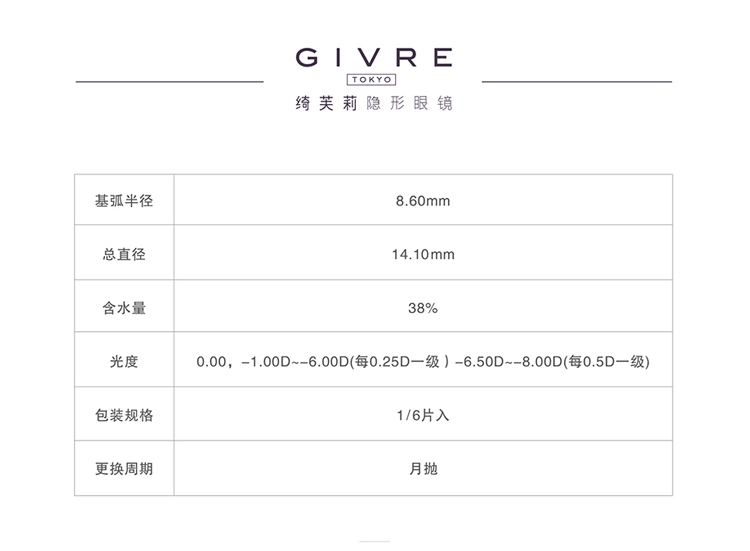 日本Givre绮芙莉月抛美瞳1片装混血女大小直径隐形近视眼镜envie