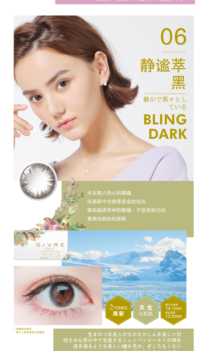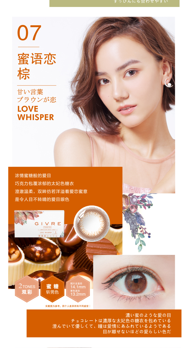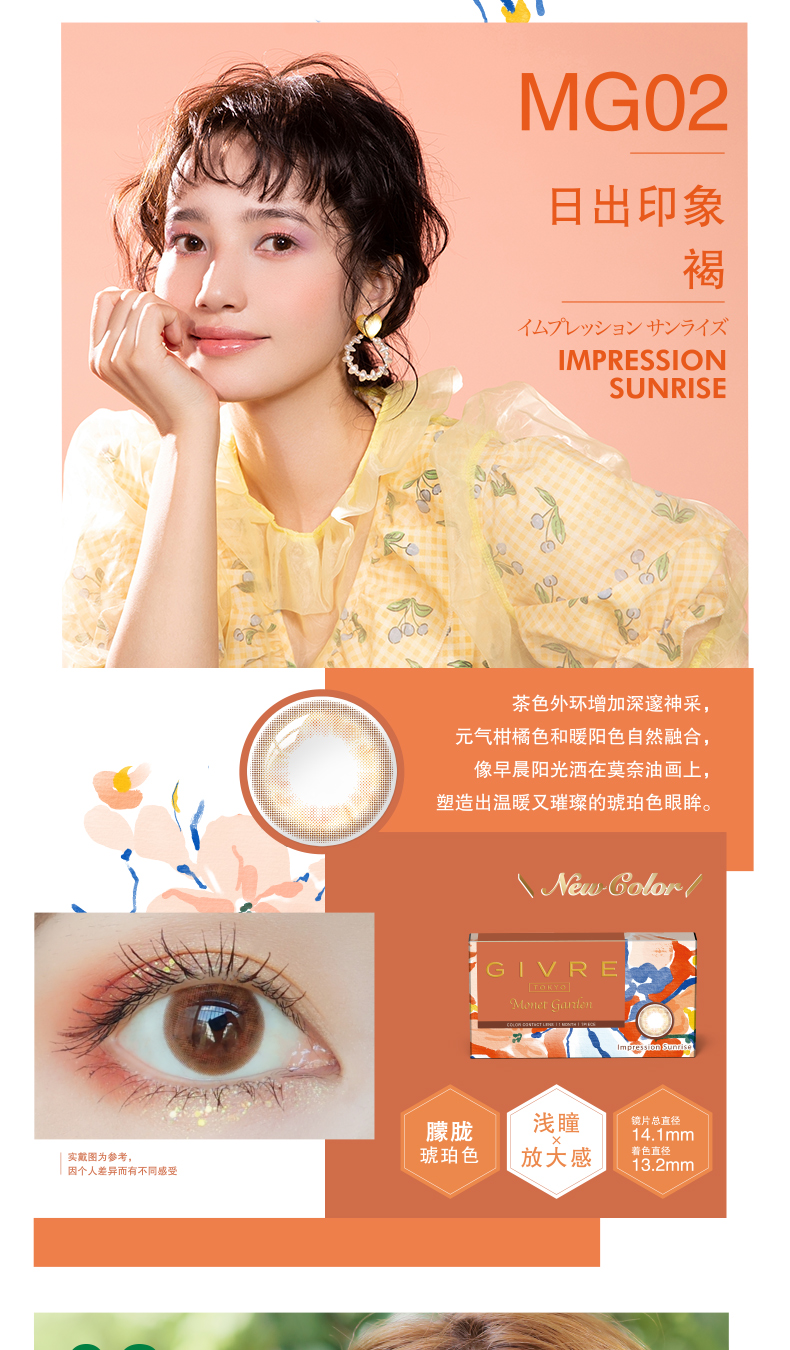 日本Givre绮芙莉月抛美瞳1片装混血女大小直径隐形近视眼镜envie