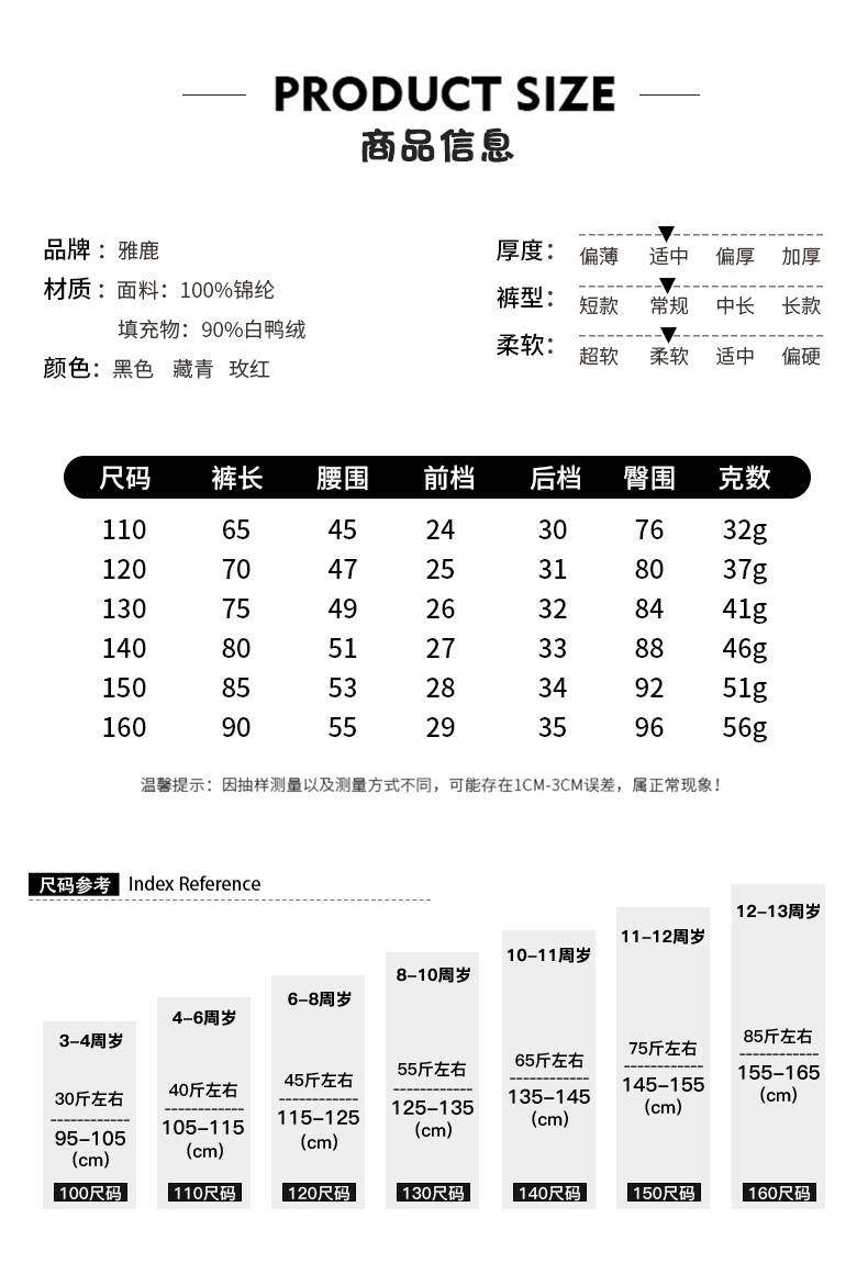 雅鹿羽绒裤儿童,【一线品牌雅鹿,线下实体店4千家】多彩选择,趣味童年,四层锁绒,糖果色男女童3-12岁外穿,90%白鸭绒儿童羽绒裤,这个冬天不在冷!