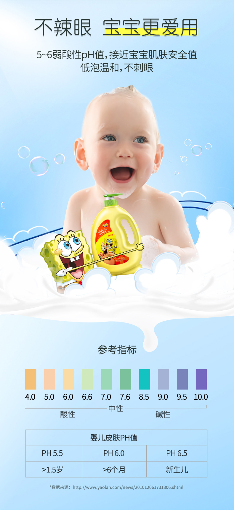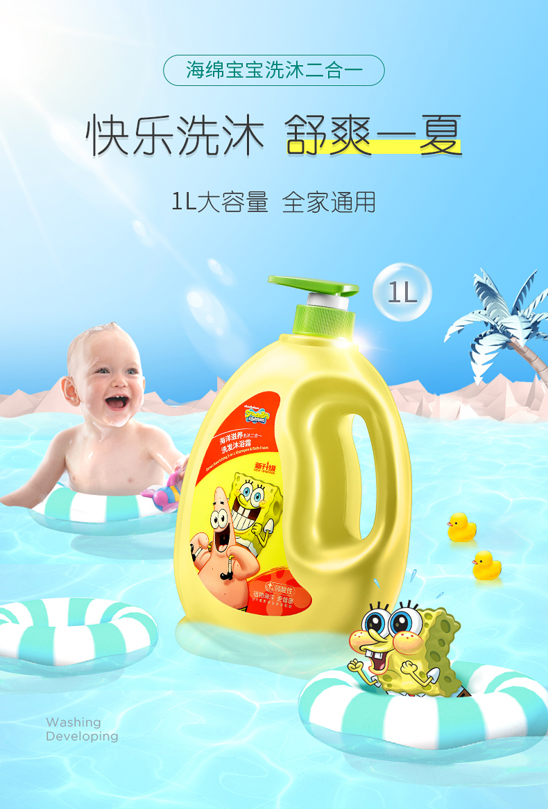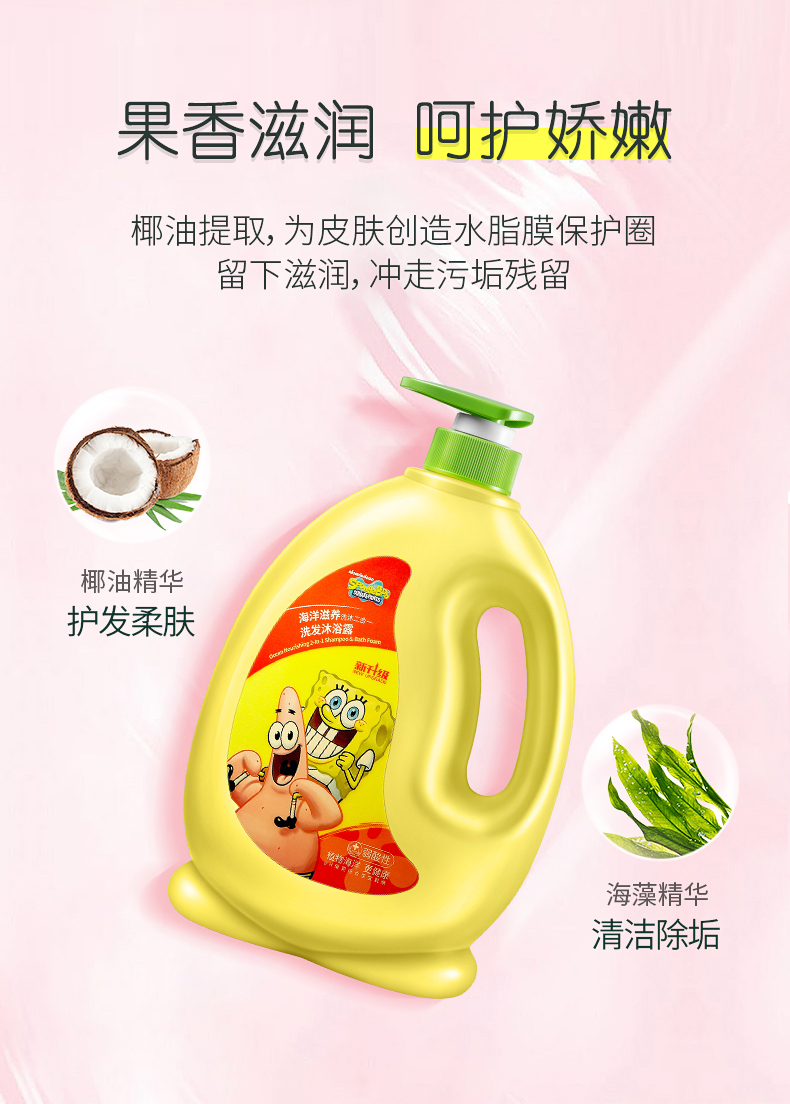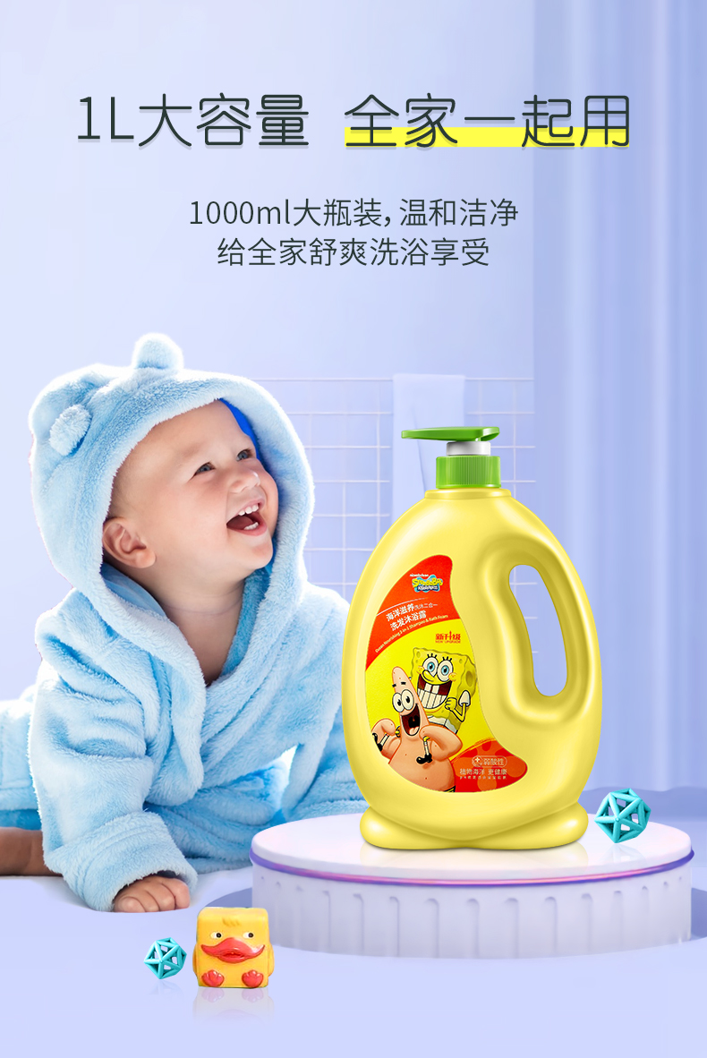 【1L大容量全家通用】美国海绵宝宝官方授权,20000+零售同步销售,4大无添加,椰油提取,植物性更温和,洗沐二合一,亲肤无刺激,低泡无泪无配方,呵护宝宝幼嫩肌肤~~