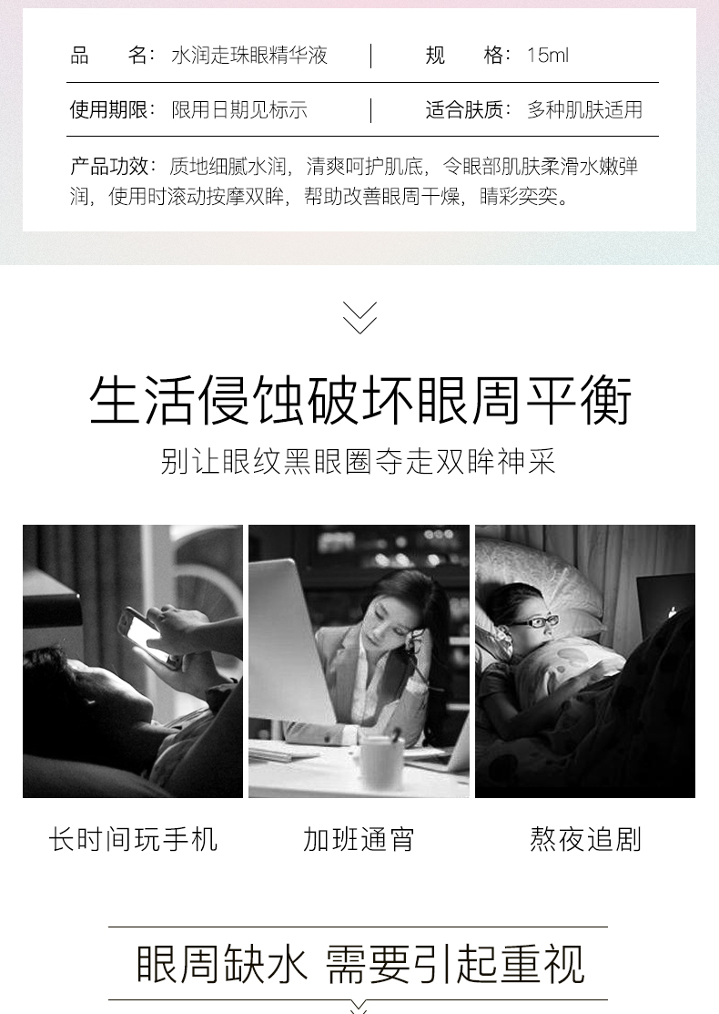 【拍一发三】滚轮走珠眼霜精华,专门为熬夜党准备,从肌底滋养眼部,360°滚珠设计,赶走熊猫眼,大眼袋,重现年轻双眸!