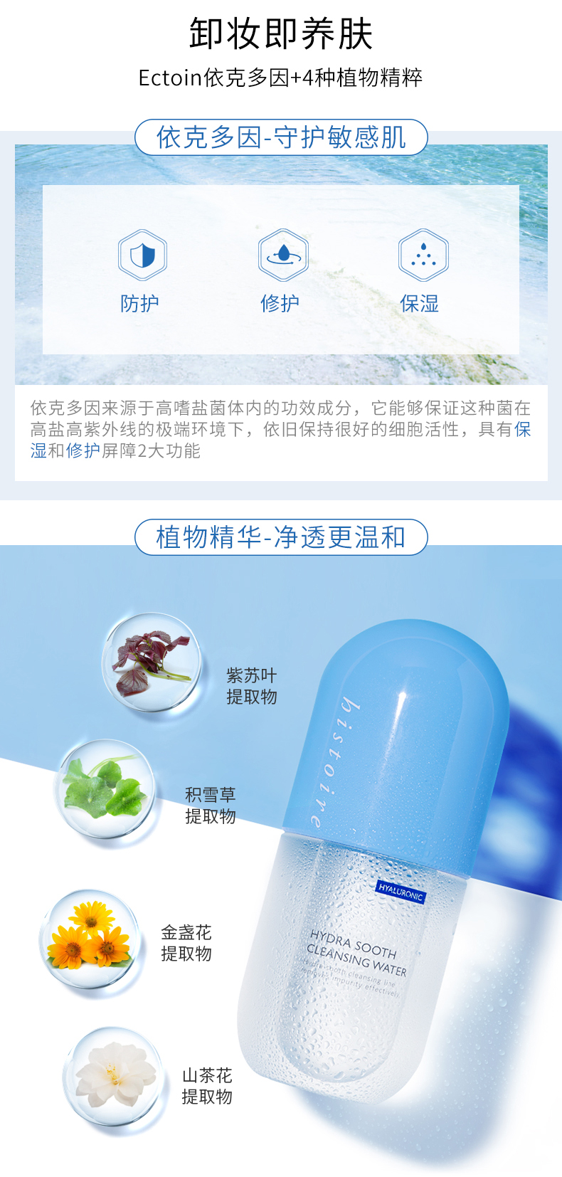 荷诺玻尿酸药丸卸妆水温和清洁 敏感肌不刺激 按压式脸部清洁大瓶