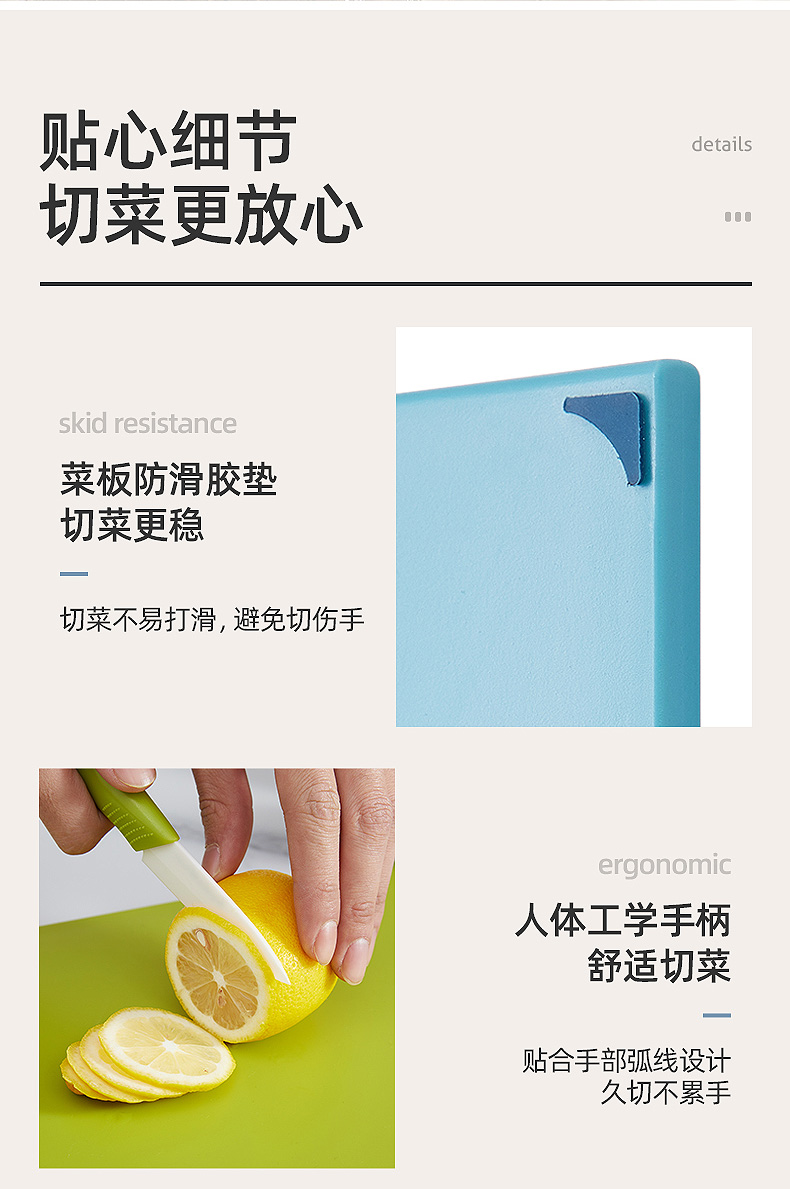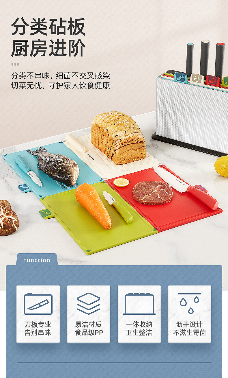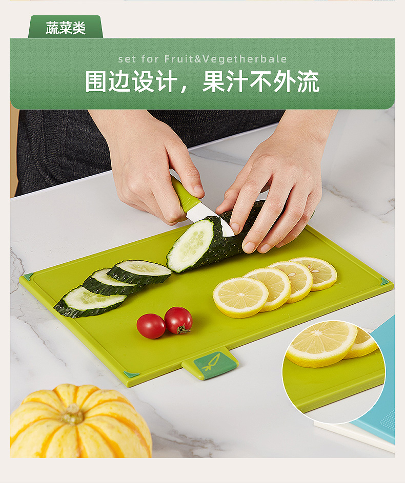保卫家人健康好帮手,抗菌菜板套装系列。耐热耐摔环保PP材质,容易清洗,双面防滑设计,底部镂空设计,快速晾干,居家厨房好帮手!
