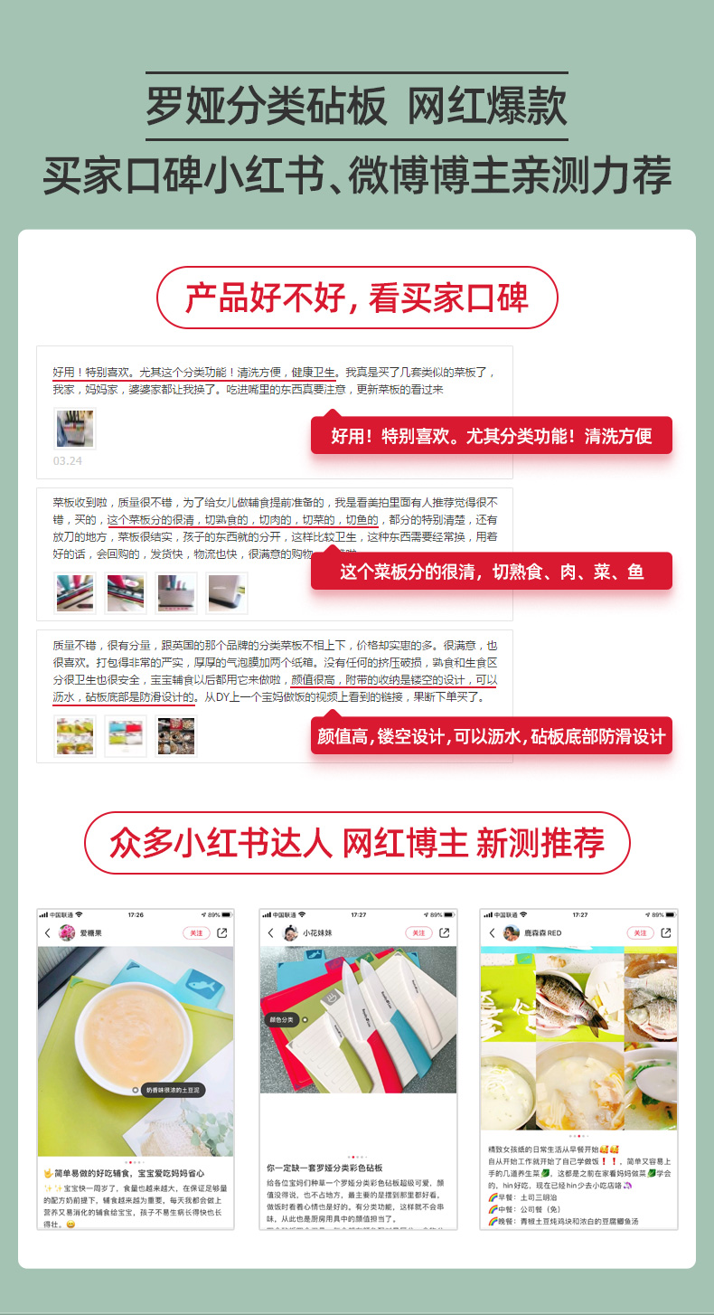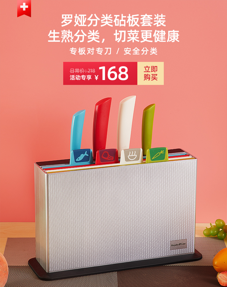 瑞士罗娅分类砧板带刀沾板菜板套装辅食案板切水果防霉塑料粘板