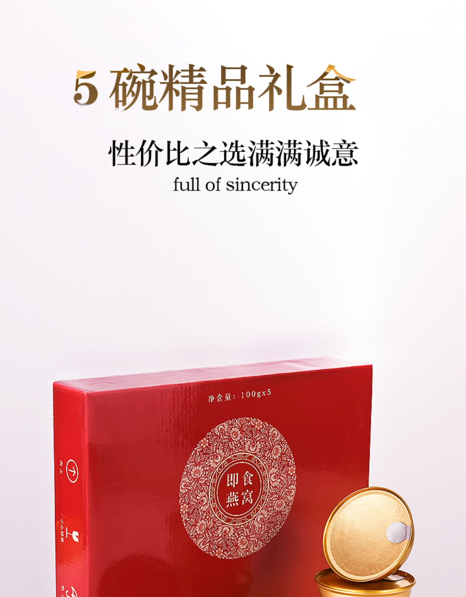 茗挚小金碗即食碗装冰糖碗装燕正品100g*5碗孕妇孕期补品饮品礼盒