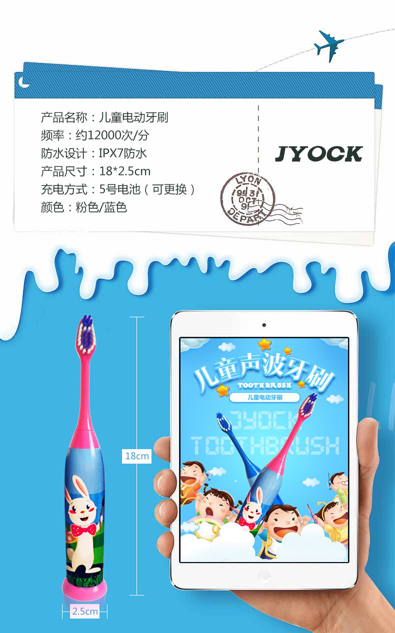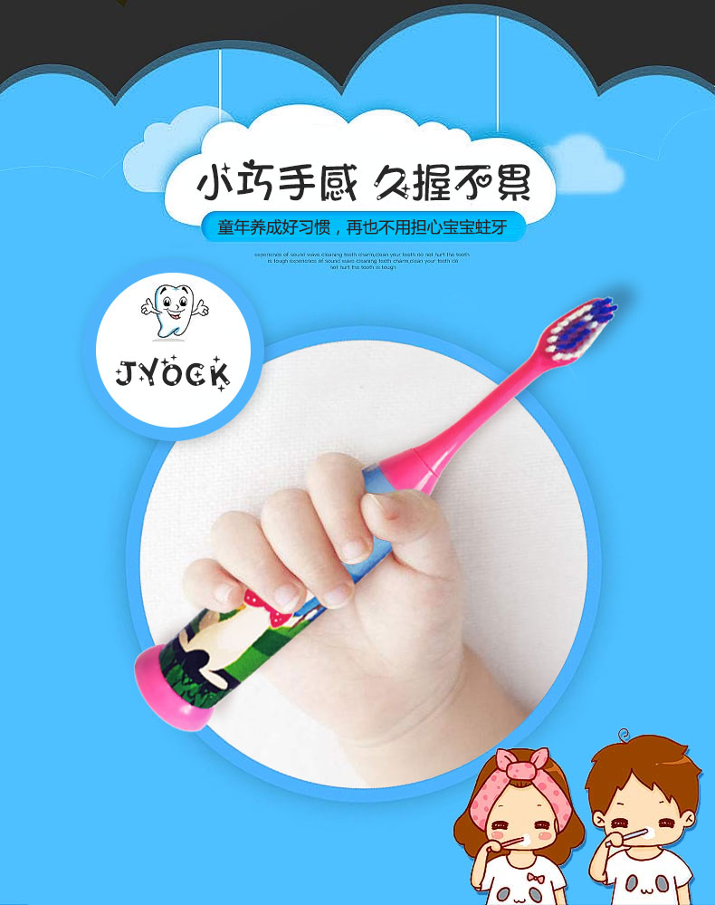 JYOCK/京客卡通儿童声波震动电动牙刷适合5-16岁宝宝电动牙刷