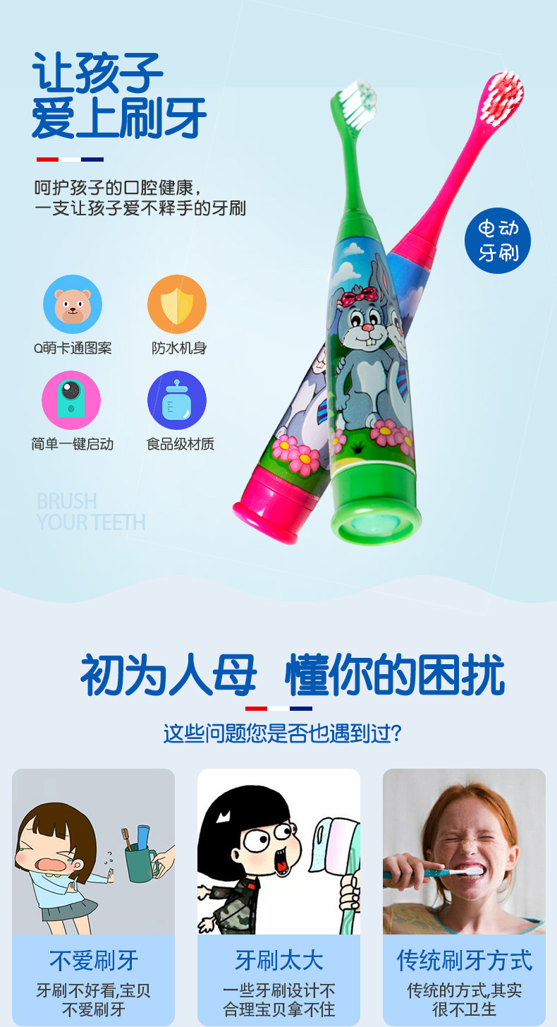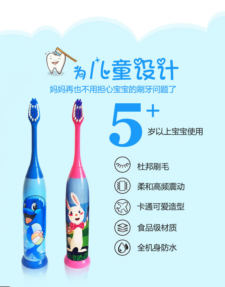 【京客儿童电动牙刷】小刷头专为儿童口腔健康设计,柔软刷毛,呵护敏感口腔!卡通形象设计,孩子更爱刷牙【赠运费险】
