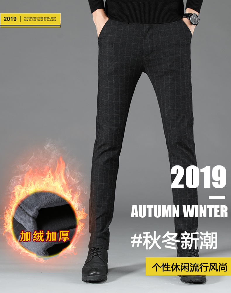 秋季休闲西裤男士修身直筒商务长裤子男韩版潮流百搭黑色加绒加厚
